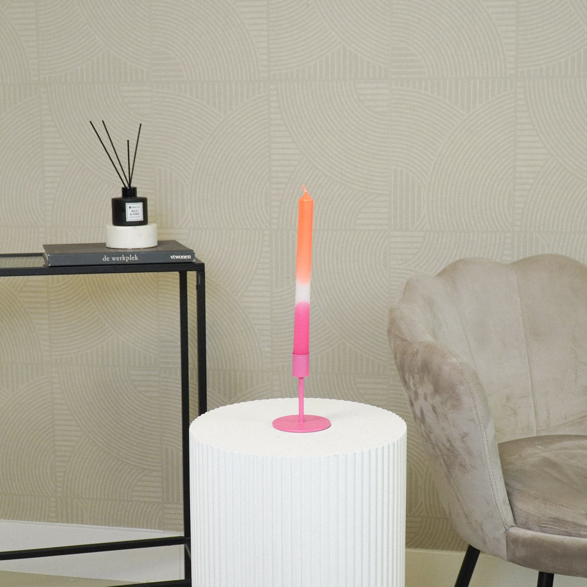 EEN INTERIEUR ZONDER KANDELAREN IS EEN INTERIEUR ZONDER ZIEL- Licht je interieur op met deze prachtige metalen kaarshouder van Housevitamin! De fel roze kleur geeft een speelse uitstraling en fleurt jouw interieur op. Met een afmeting van 8x8x10 cm is deze kandelaar ideaal voor een dinerkaars. Creëer een gezellige sfeer als de schemer intreedt en geef je eettafel de finishing touch die het verdient. Laat je interieur stralen met deze must-have accessoire!