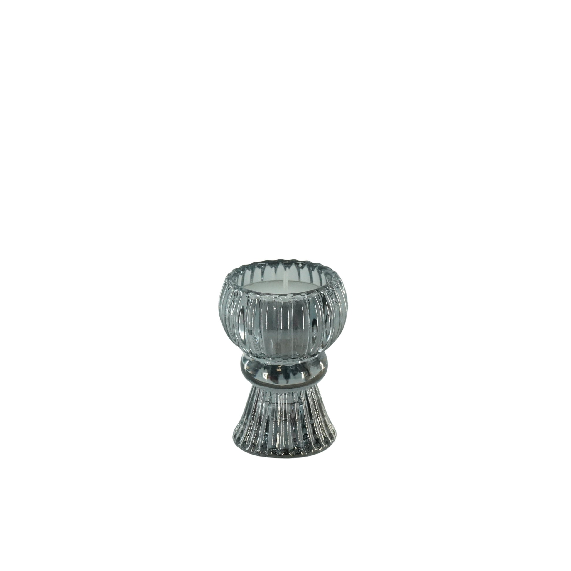 Kaarshouder- Kandelaar en Waxinelichthouder- Glas- Smokey -6x8cm
