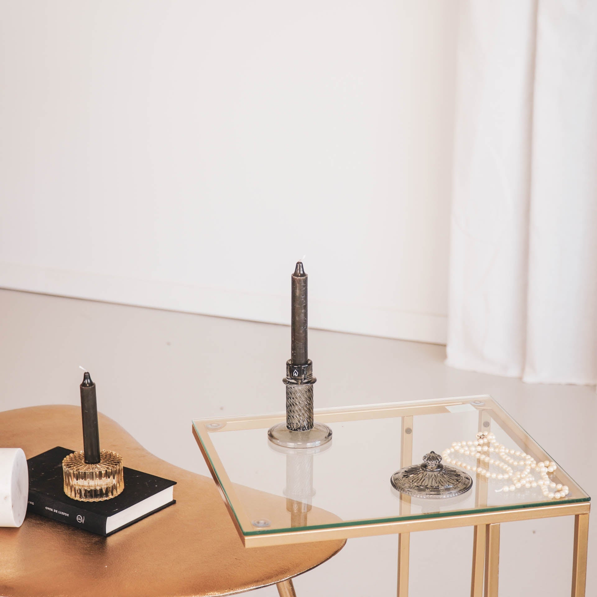 Kaarshouder- Kandelaar - Glas - Grijs - 8x10 cm