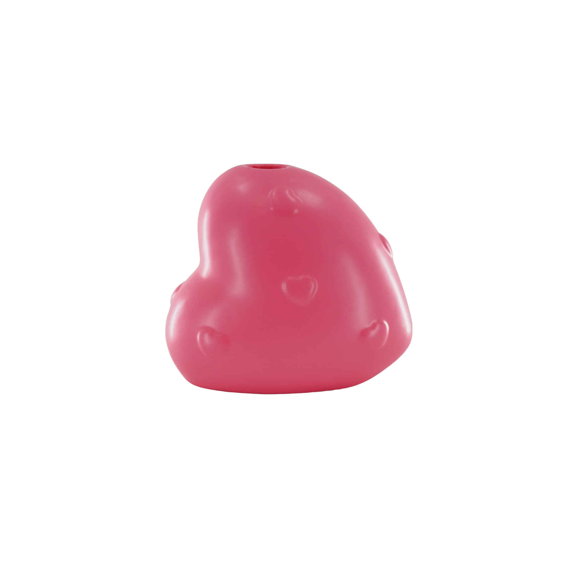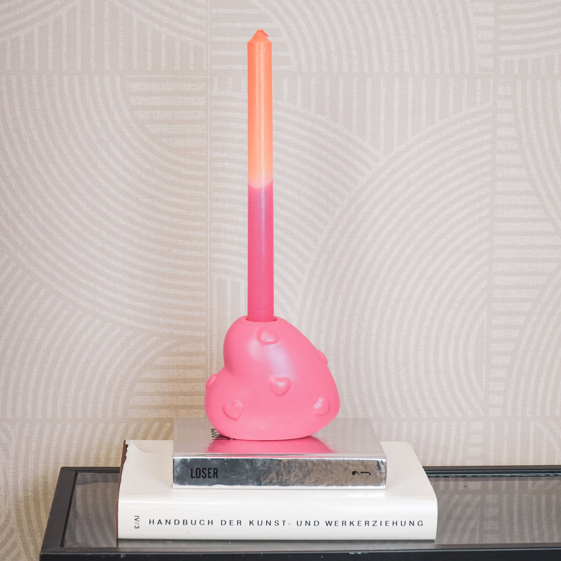 Kaarshouder- Kandelaar - Hartjes - Keramiek - Fluor Roze - 11x7,5x10 cm