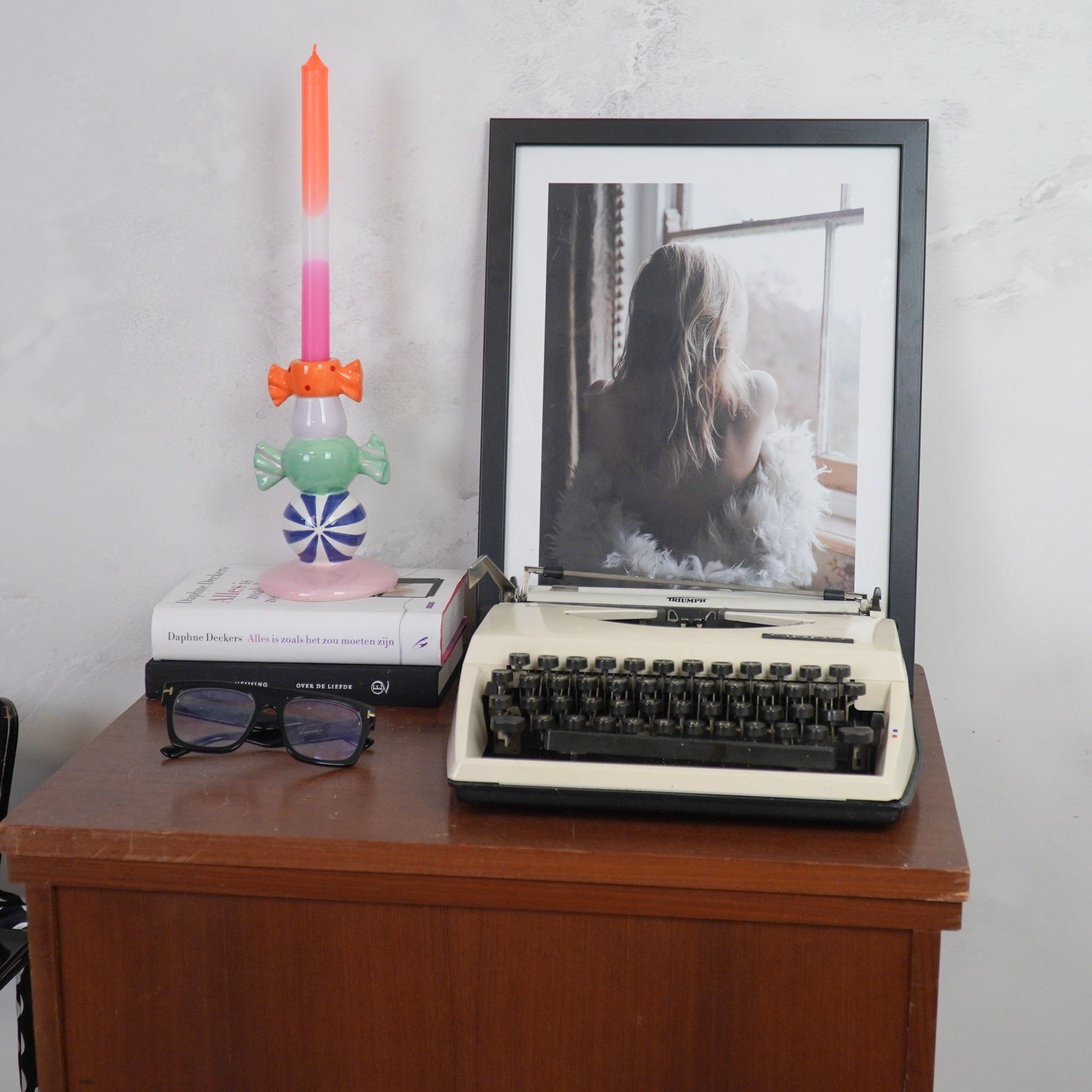 Combineer deze snoepjes kandelaar met andere kleurrijke accessoires of kandelaars voor een speels en feestelijk effect. Steek er een felgekleurde kaars in, bijvoorbeeld geel, roze of oranje, en zet hem op een mooi dienblad met wat (nep)snoepjes of kleine vaasjes. Zo creëer je een vrolijk en uitnodigend hoekje waar iedereen blij van wordt!