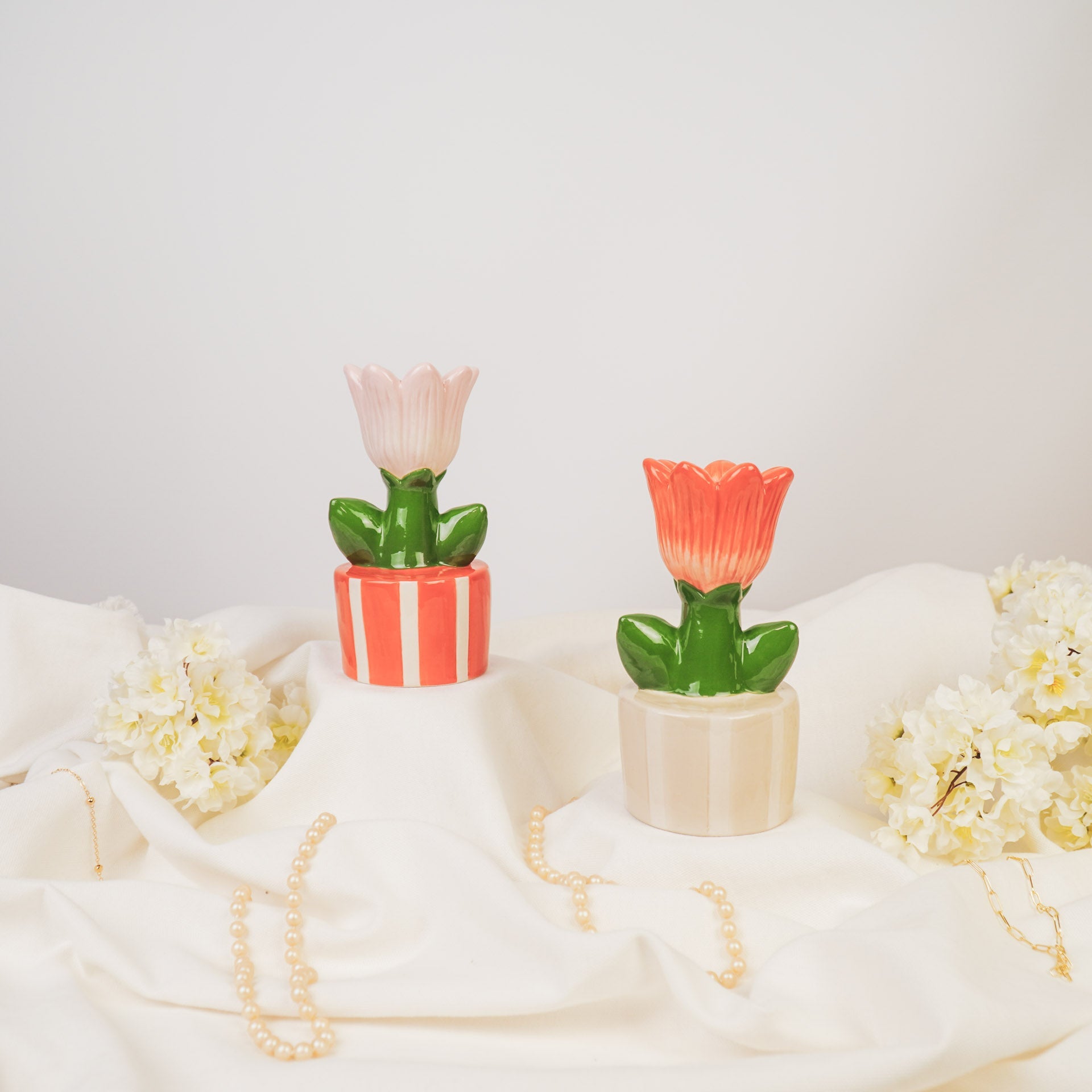 Styling tip: Kies een kaars in 1 van dezelfde kleuren als de tulp kandelaar en je hebt ton sur ton!