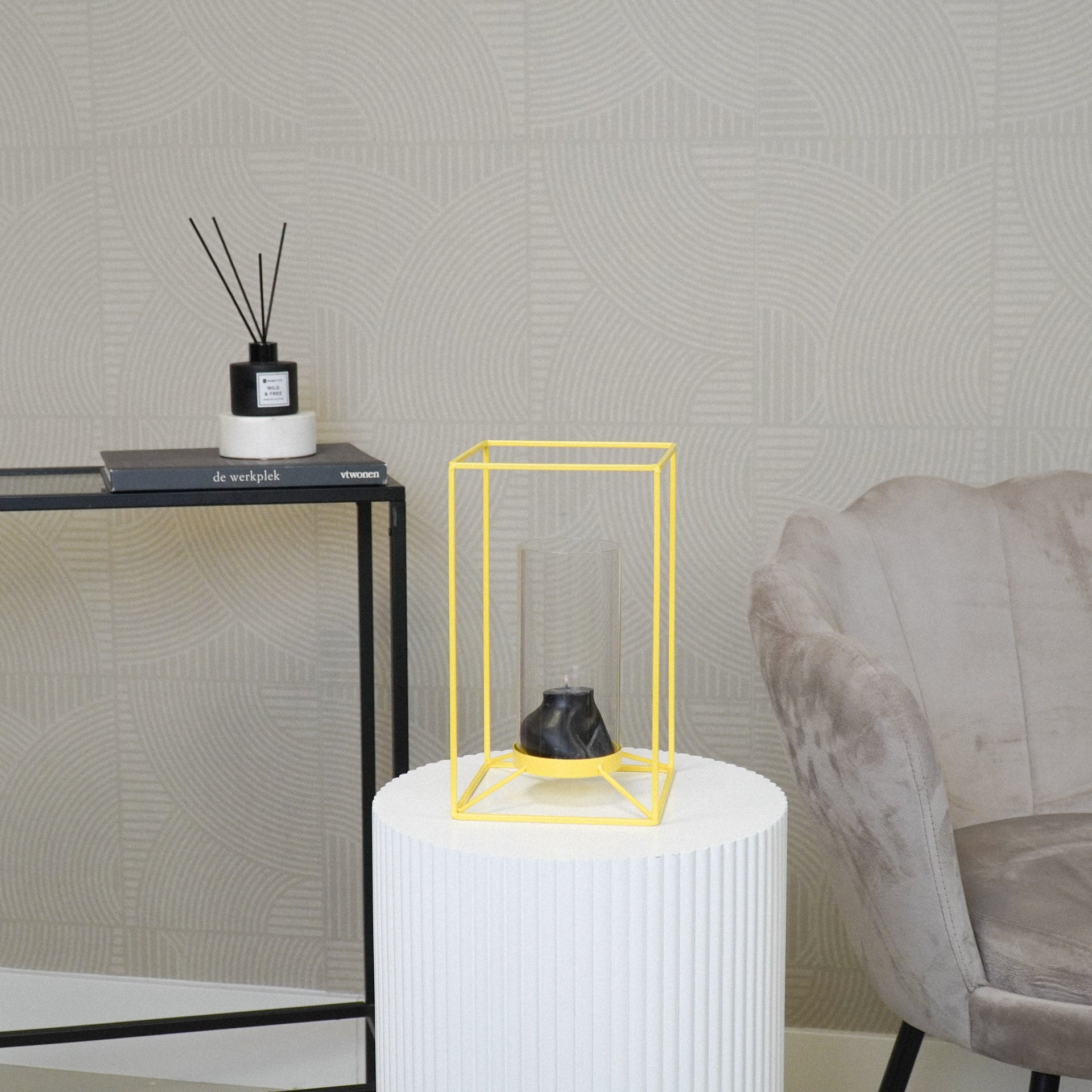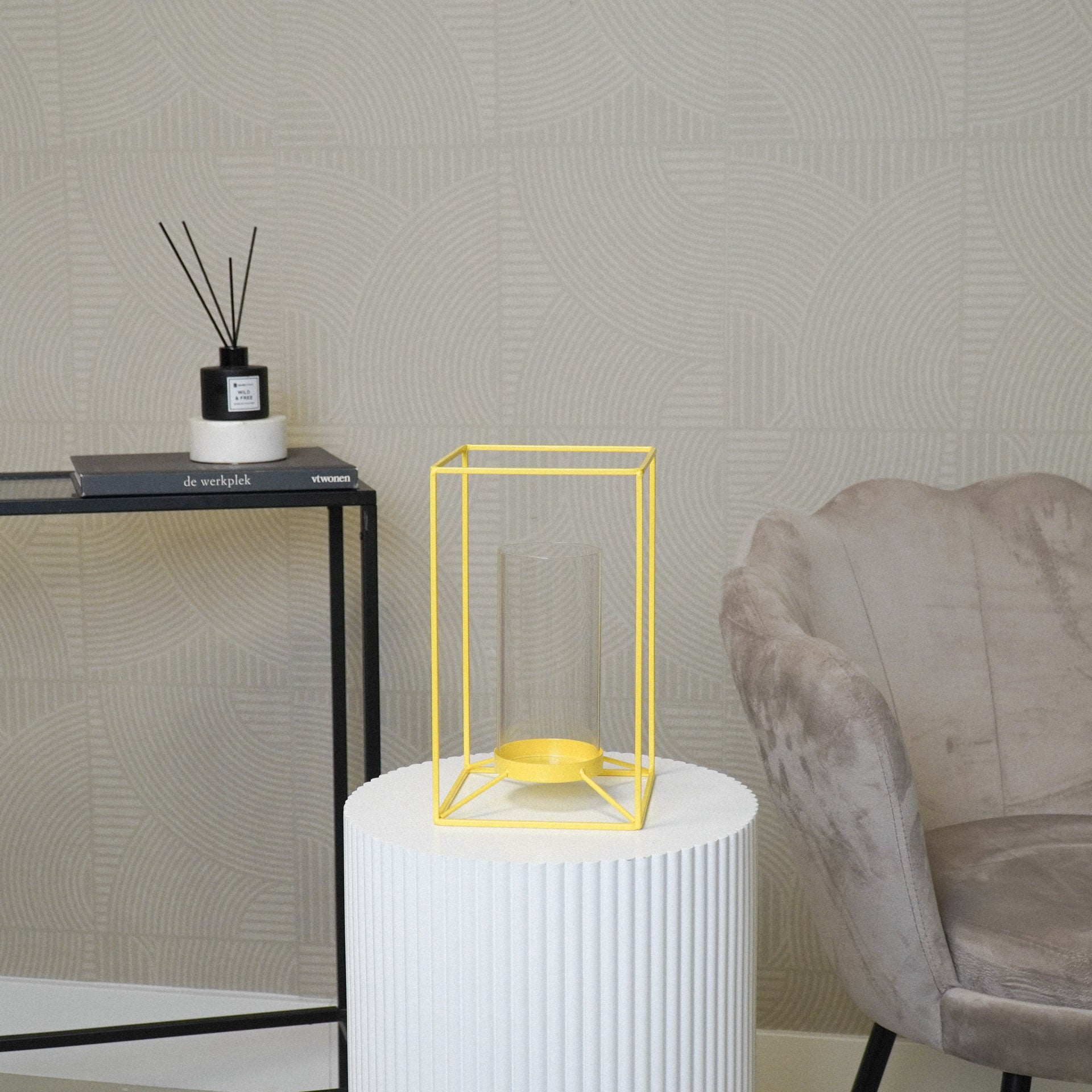 SHINE A LIGHT - Op zoek naar de perfecte sfeermaker voor in huis? Zoek niet verder! Deze fel gele metalen kaarshouder met glazen windlicht is precies wat je nodig hebt. De combinatie van metaal en glas zorgt voor een stijlvolle uitstraling, terwijl de afmetingen van 14,5x14,5x25 cm perfect zijn voor elke ruimte. Creëer een warme en gezellige sfeer in huis met dit prachtige windlicht van Housevitamin.