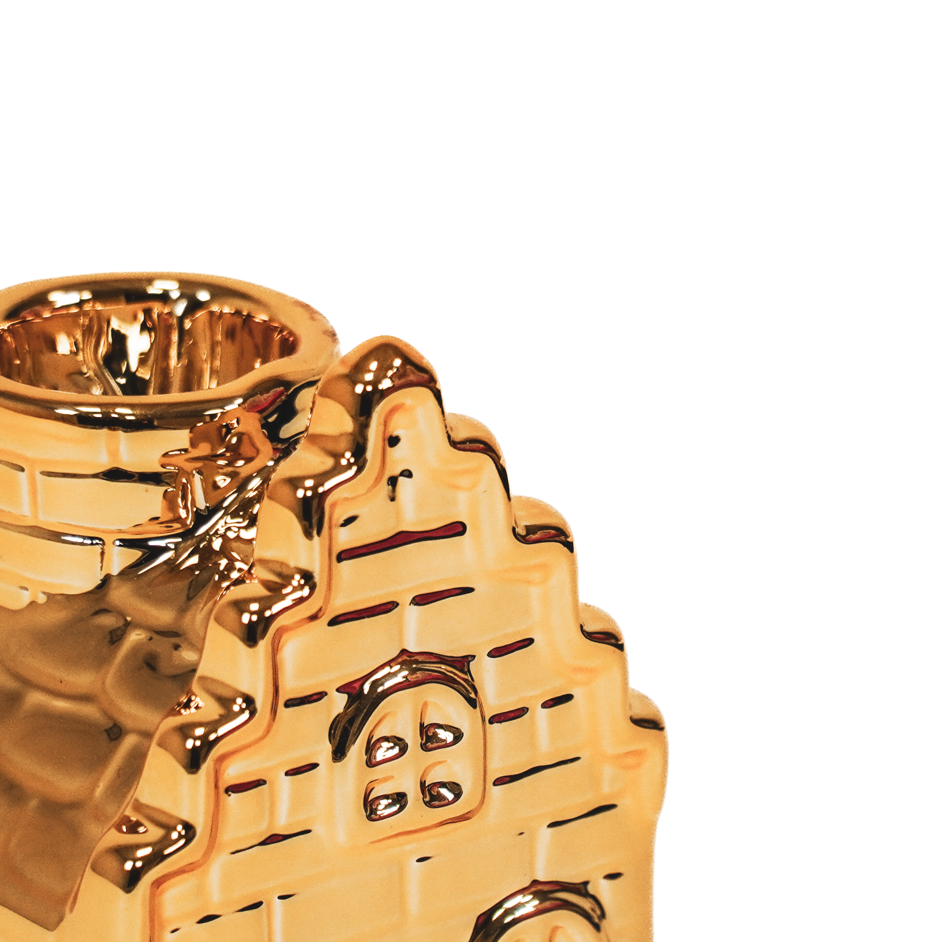 Kandelaar - Huis - Keramiek - Goud - 6x6x11cm