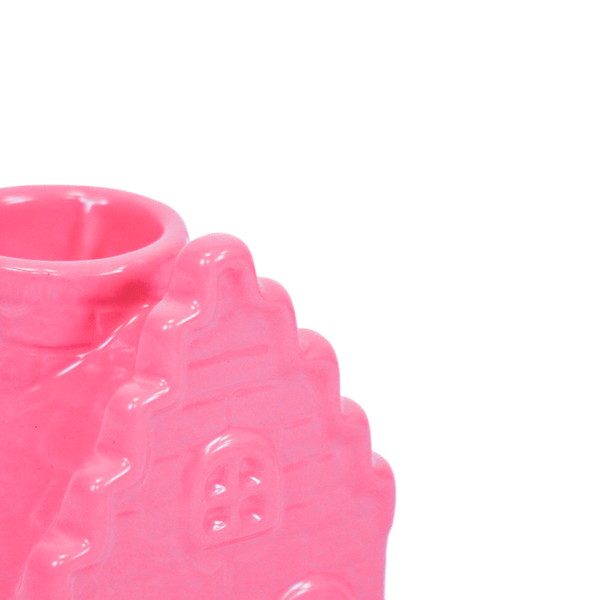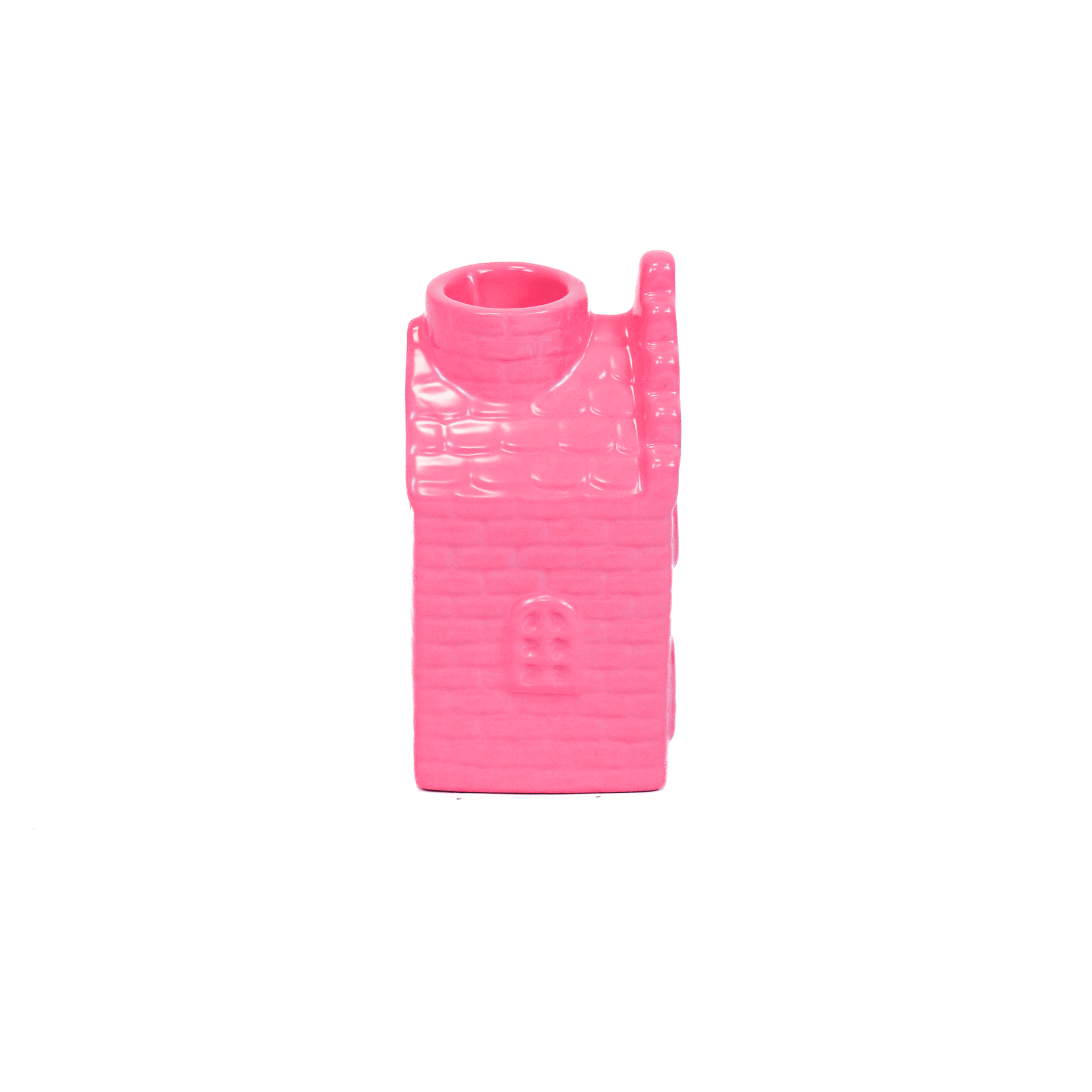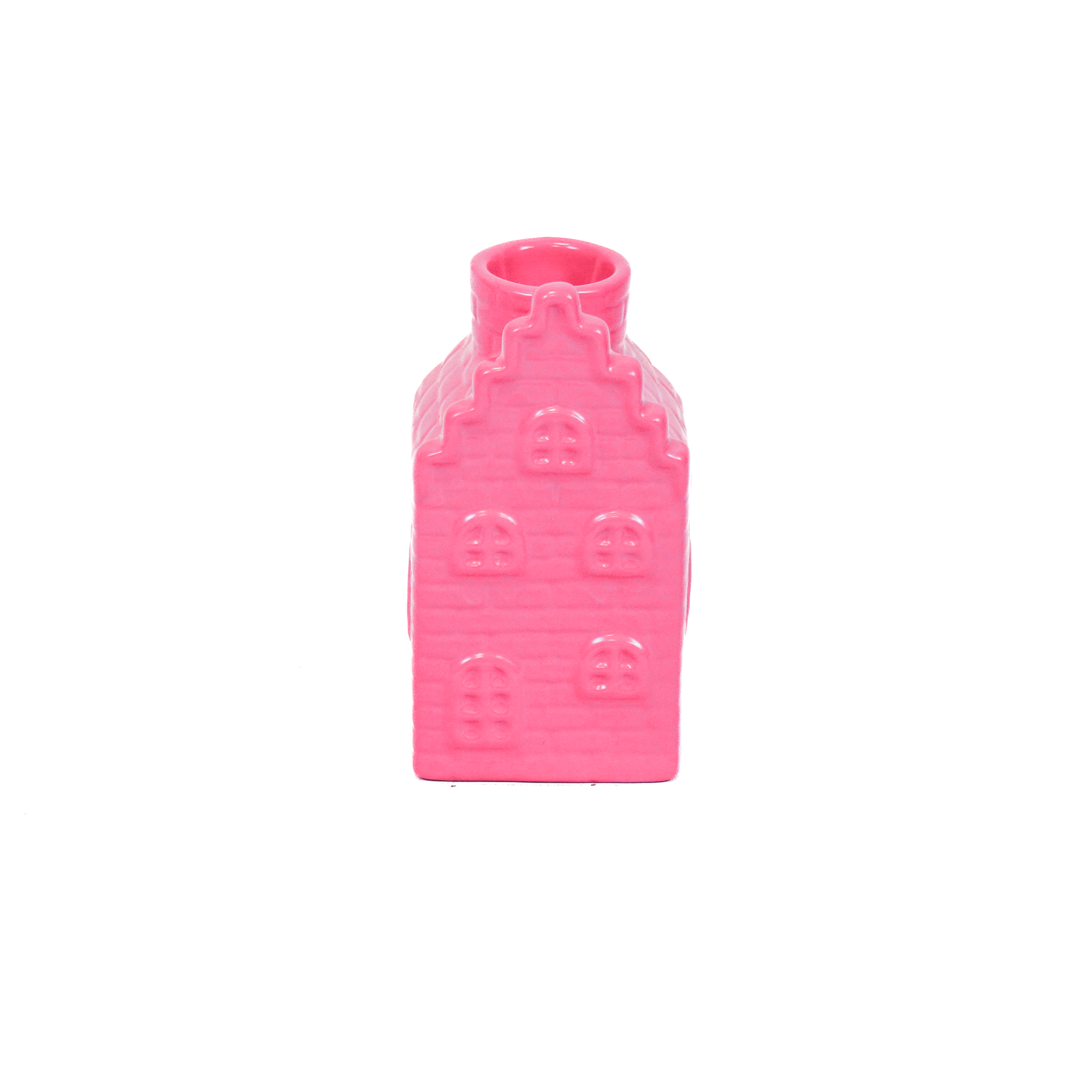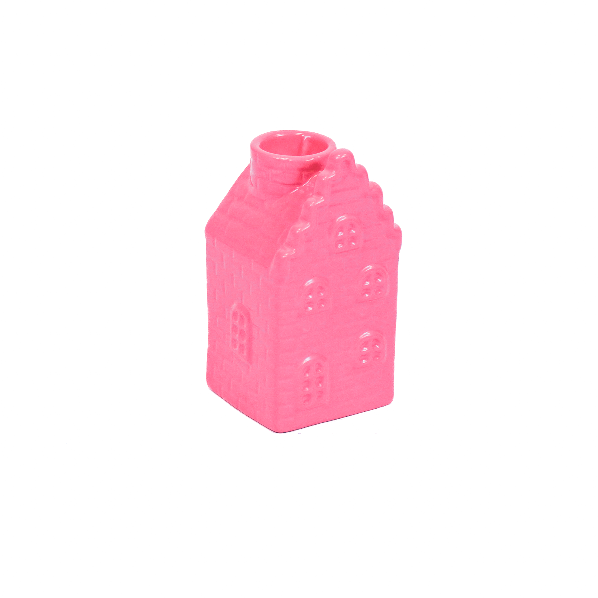 Kandelaar - Huis - Keramiek - Neon Roze - 6x6x11cm