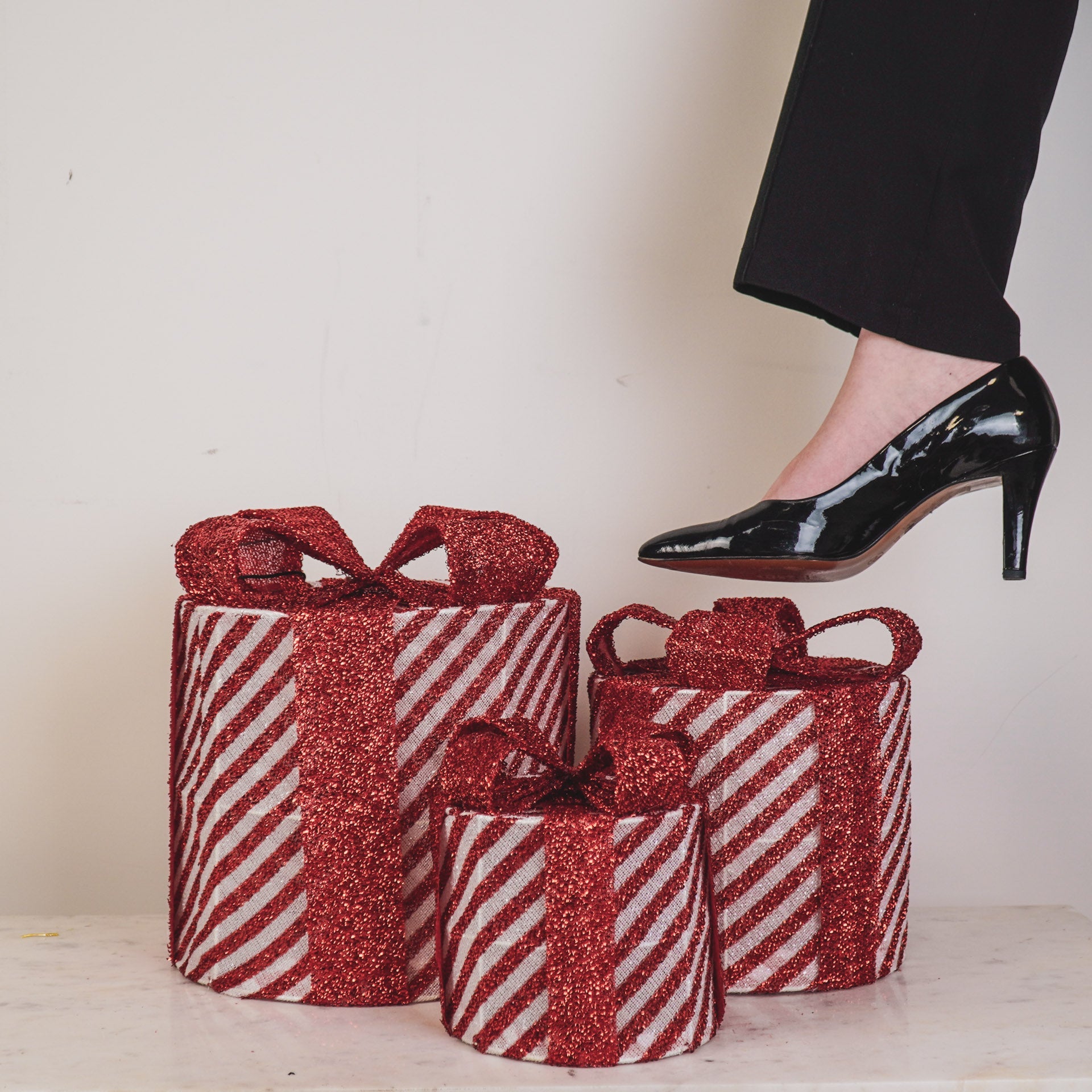 De set bestaat uit 3 verschillende maten (15 / 20 / 25 cm), waardoor ze samen een speels en feestelijk geheel vormen. Perfect om direct onder je kerstboom te zetten en instant holiday vibes te creëren. Als dit geen kerstgevoel geeft, weten wij het ook niet meer!