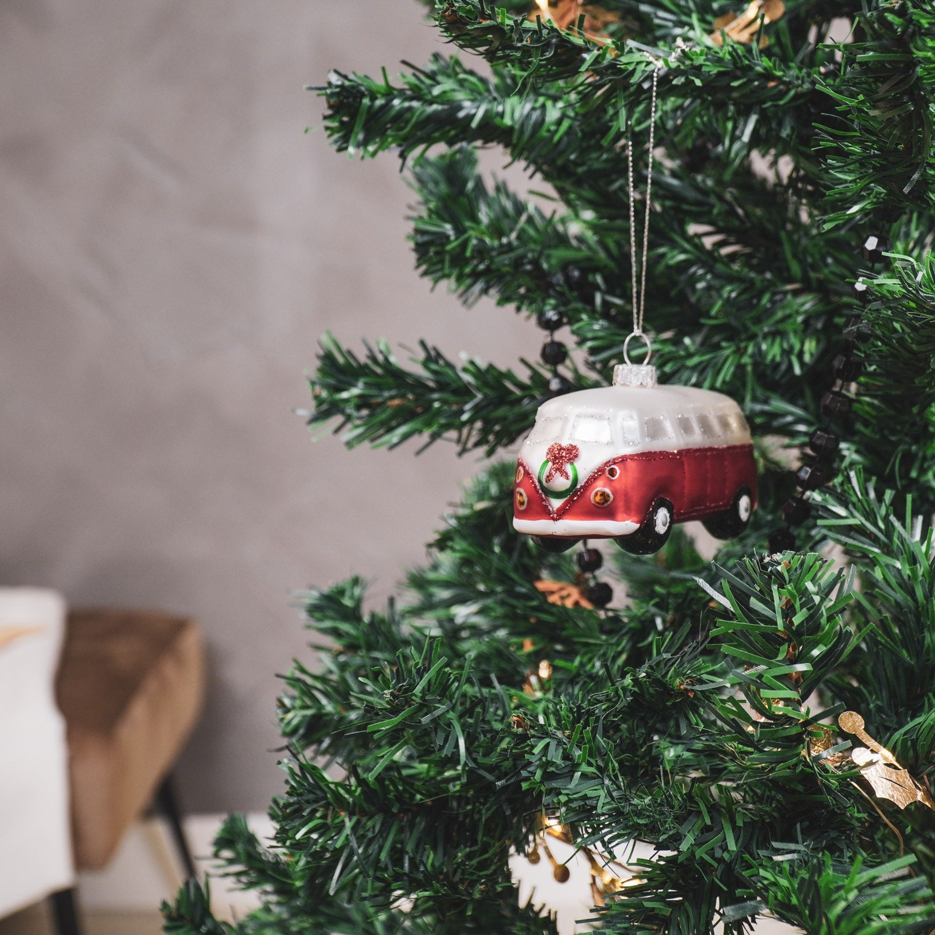 Kersthanger - Bus - Glas - Rood - 10,5x4,5x6cm