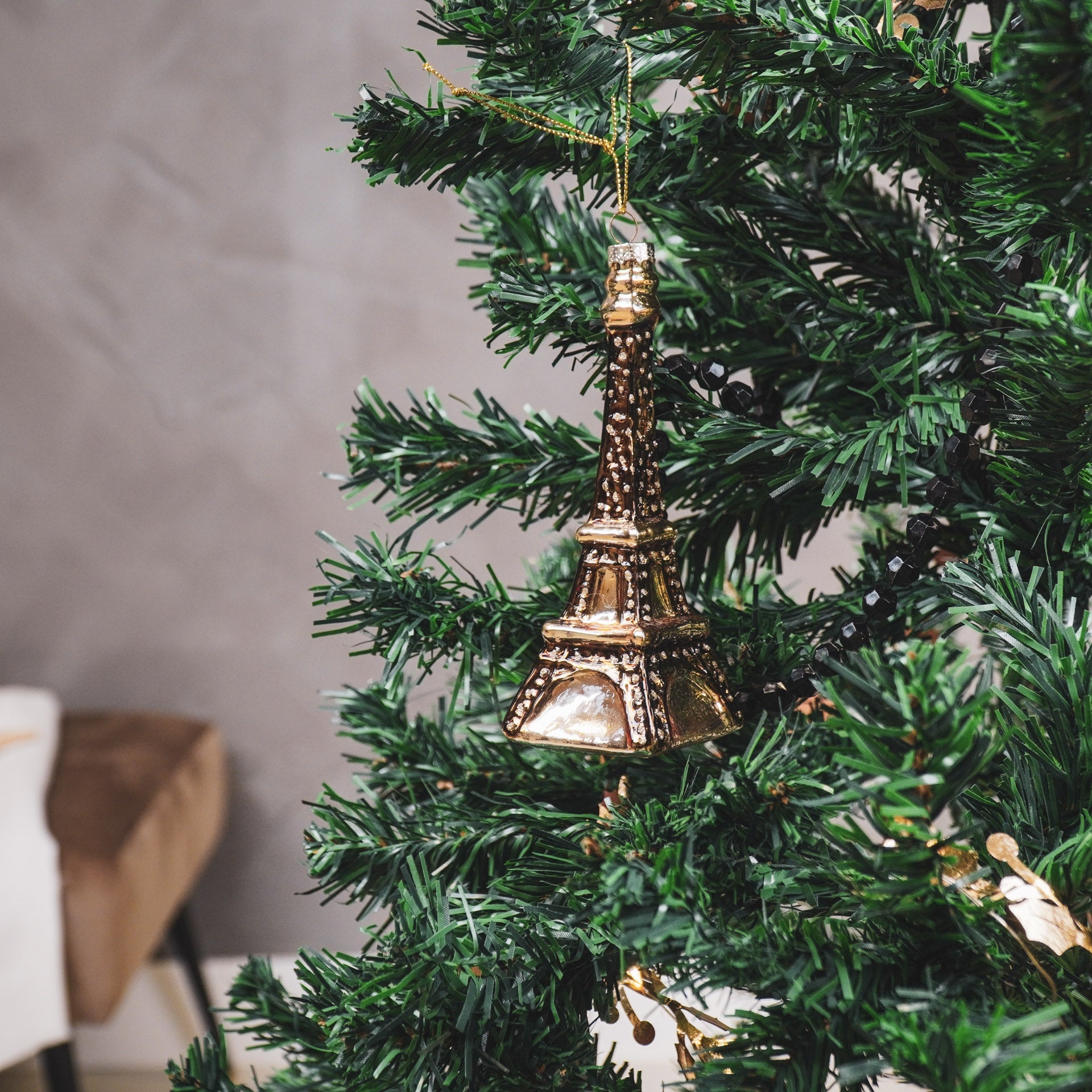 Kersthanger - Eifeltoren - Glas - Goud - 5x5x13,5cm