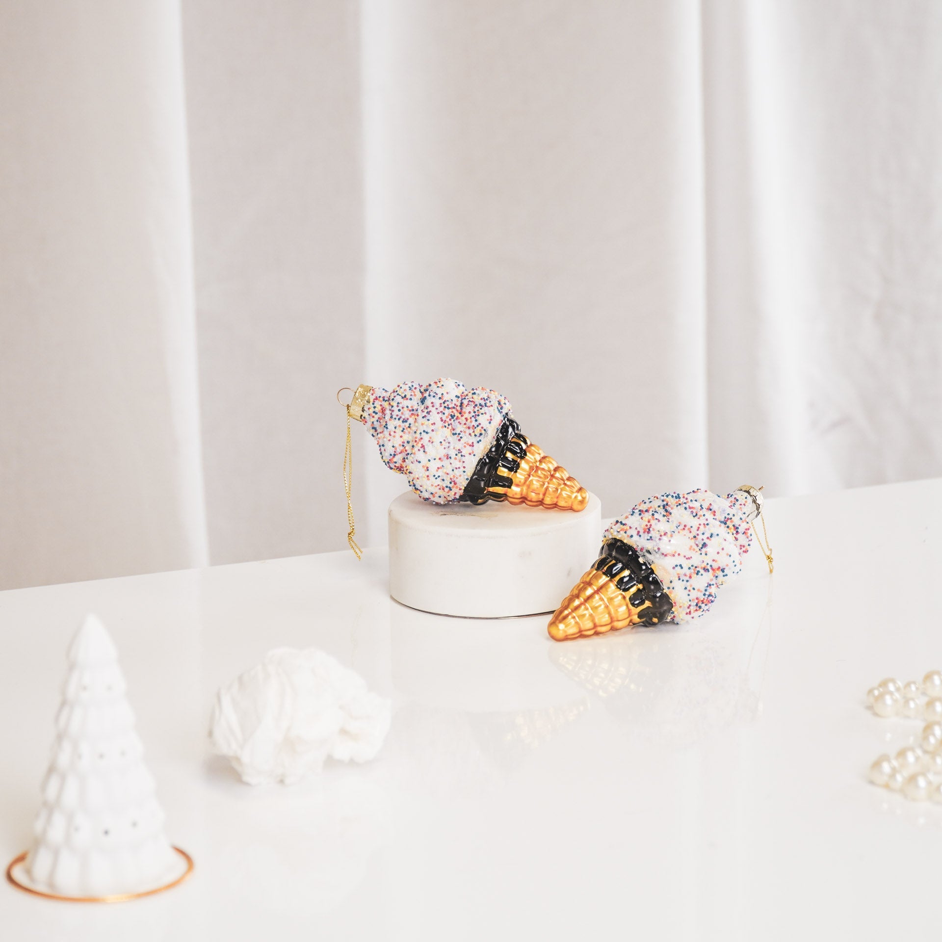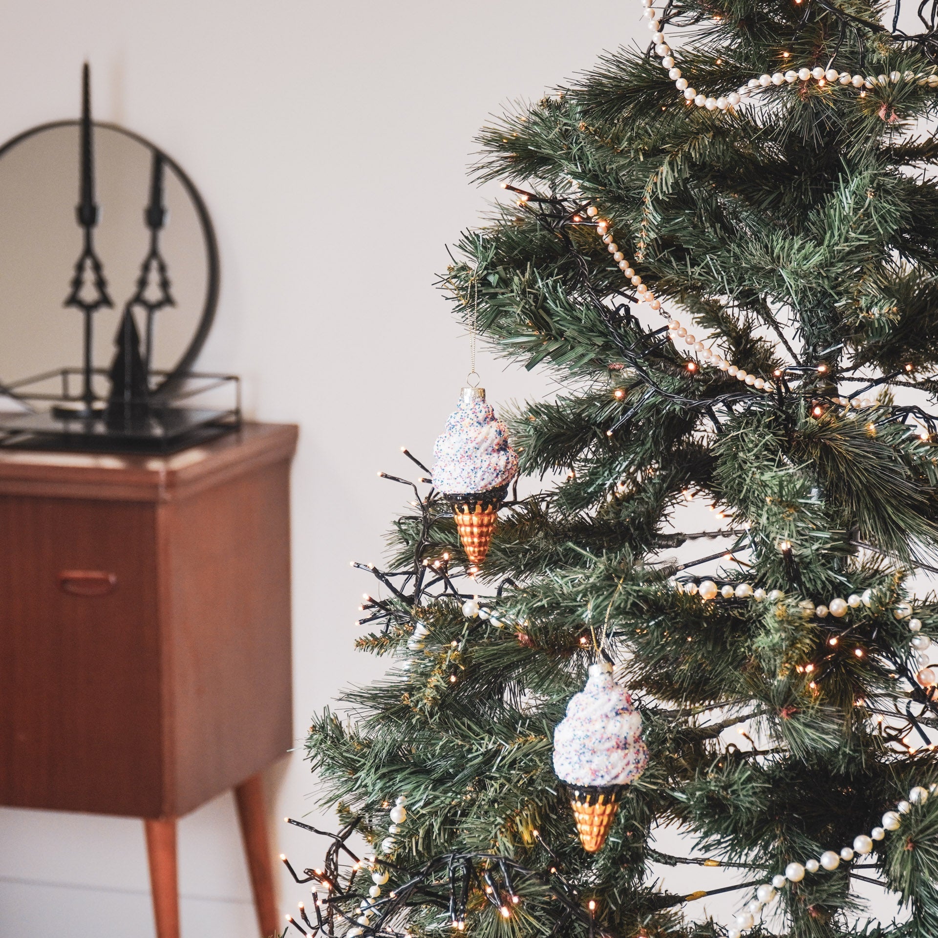 IJSJES KERSTBALLEN - Jouw kerstboom is niet compleet zonder grappige kerstdecoratie. Deze glazen ijshoorntjes kerstbal maakt jouw kerstboom leuker. Je krijgt er spontaan trek door, dus kijk uit!