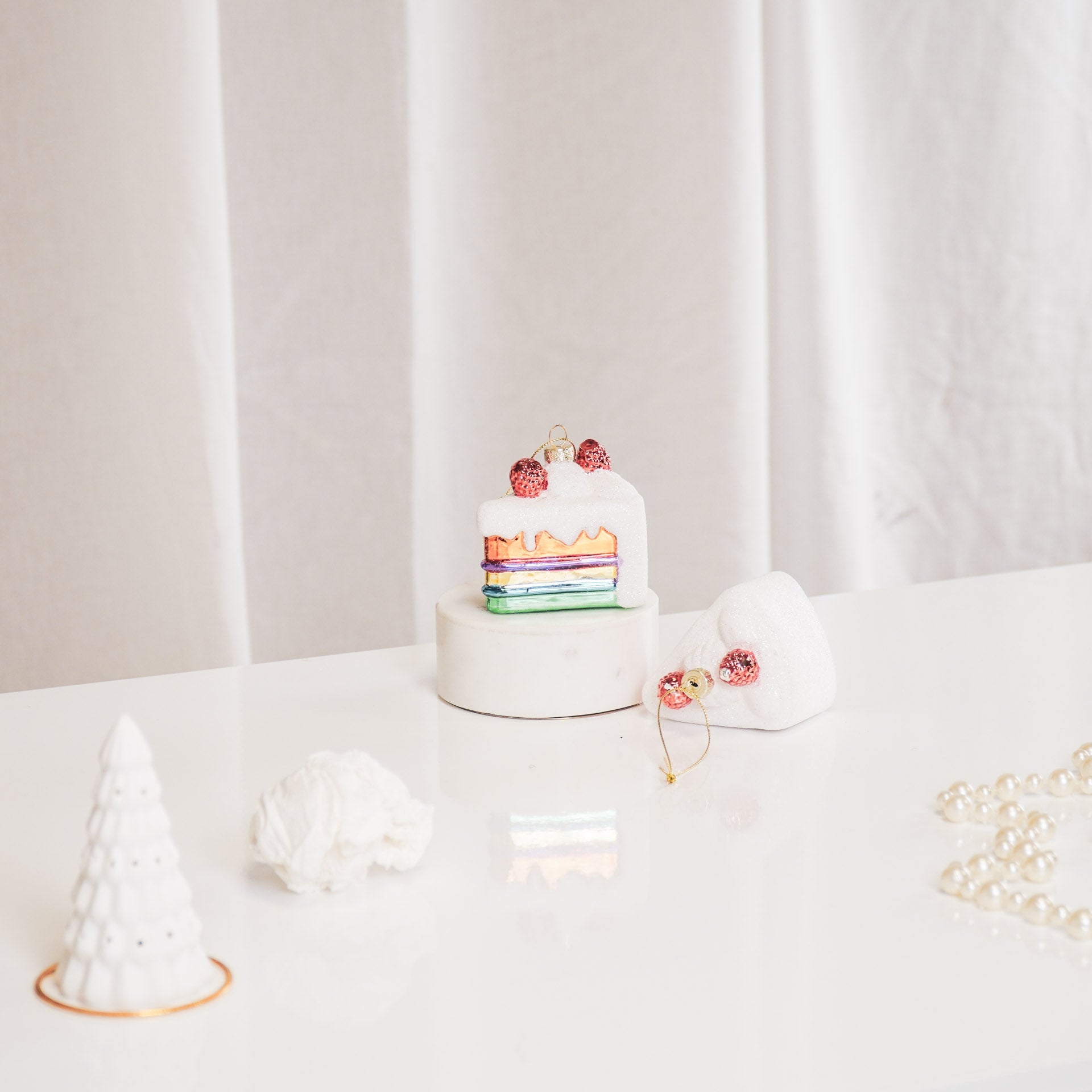 Styling Tip: Je kunt de mooie glazen taart kerstballen ook aan een tak boven jouw eettafel hangen. En versier eens een staande tak met deze gebak kerst ornamenten: styling mogelijkheden genoeg!