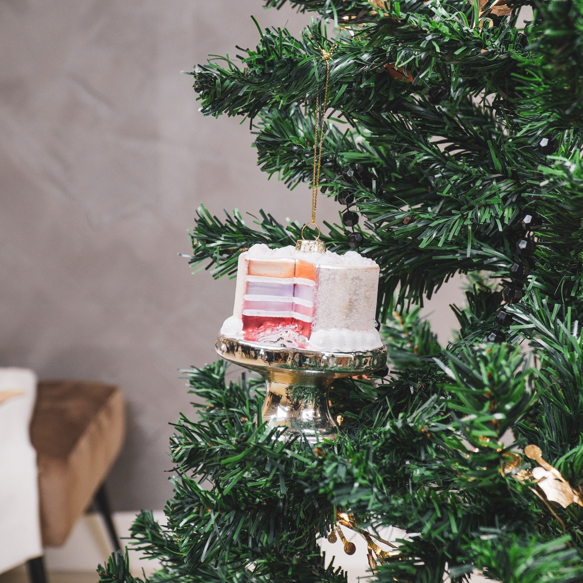 Kersthanger - Taart - Glas - Roze - 9x11cm