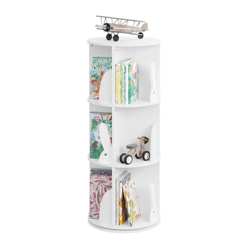 De BukkitBow draaibare staande boekenkast is een praktische en leuke toevoeging aan elke kinderkamer of speelruimte. Gemaakt van hoogwaardig E1-klasse MDF en voorzien van een metalen draaiplateau, biedt deze boekenkast niet alleen voldoende ruimte voor boeken, speelgoed en decoraties, maar is hij ook veilig en duurzaam. Met een diameter van 40 cm en een hoogte van 97 cm is deze kast stabiel en kan hij soepel en geruisloos 360° draaien, zodat kinderen gemakkelijk bij hun favoriete items kunnen.
