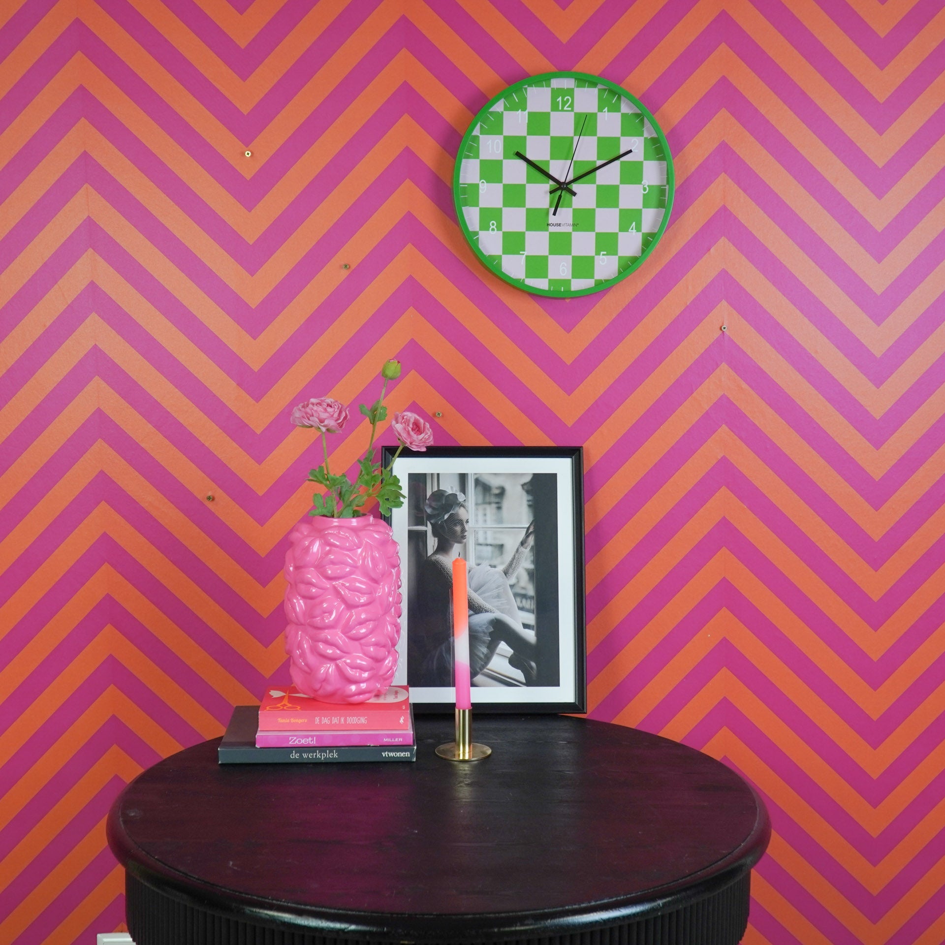 Styling tip: Hang de klok in zijn eentje aan de muur of combineer hem juist met andere ronde vormen.