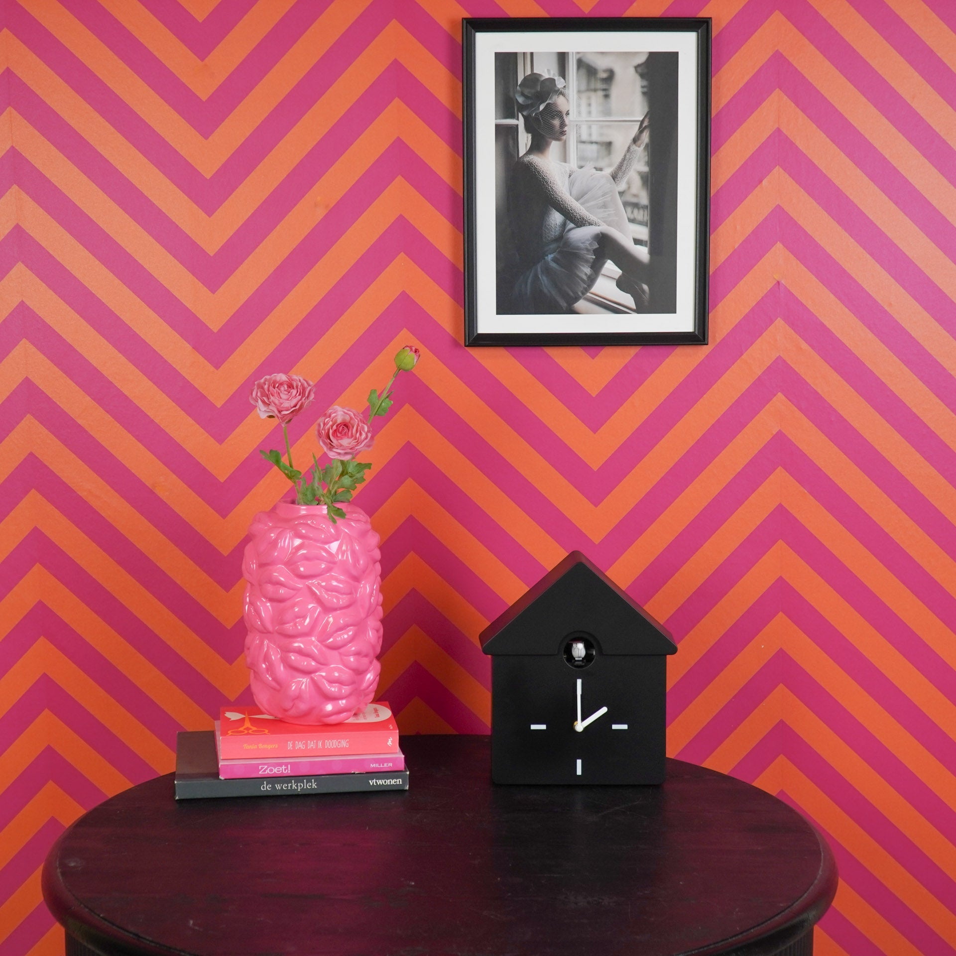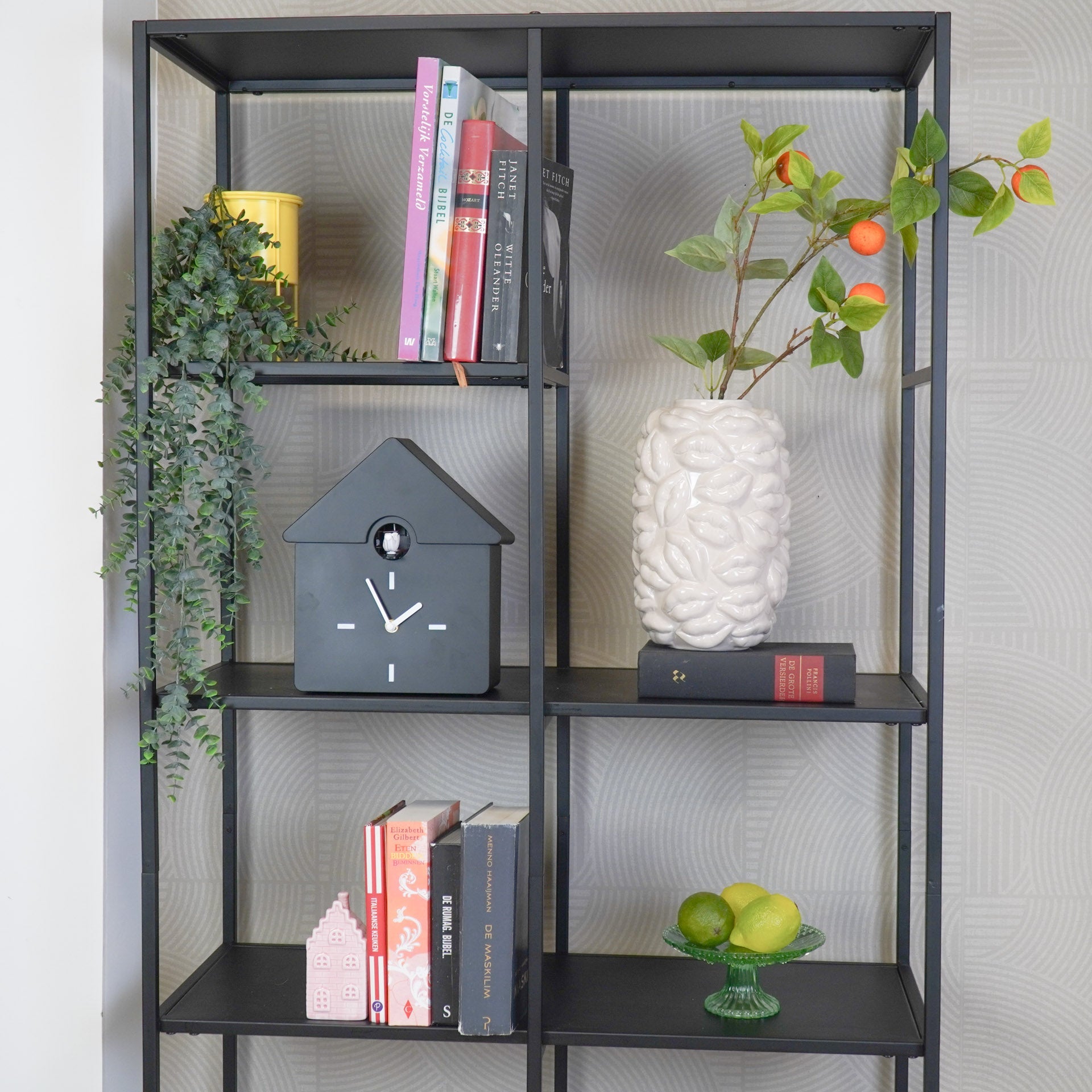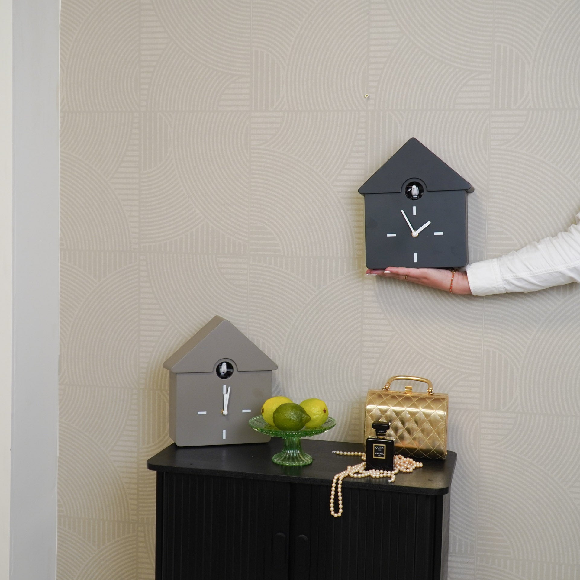 Styling tip: De gekleurde moderne koekoeksklok spat er helemaal van af als je hem voor een rustige achtergrond hangt of neerzet.