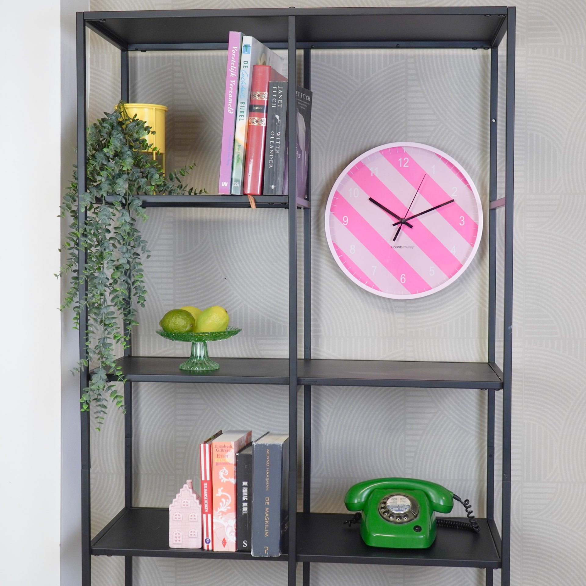 Klok - Wandklok - Streep Patroon - Roze- 34x4x34cm