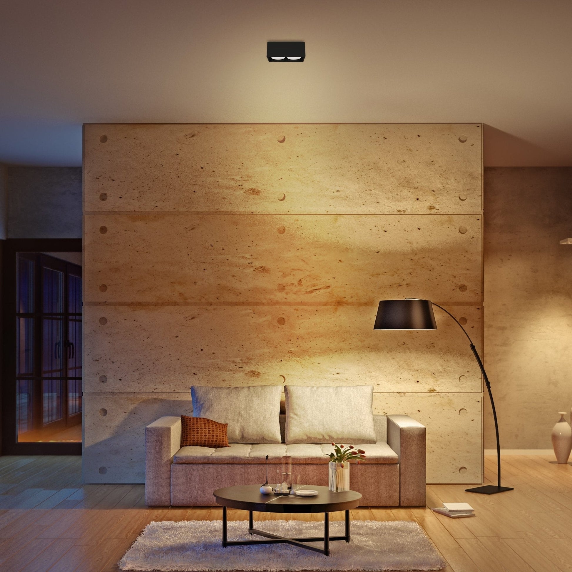 Kies uit verschillende LED GX53 lampen om de gewenste sfeer te creëren met deze stijlvolle plafondlamp met twee lichtpunten. Deze lamp is niet alleen veelzijdig, maar ook efficiënt en perfect geschikt om elke ruimte in huis te verlichten en een stijlvol accent aan te brengen.