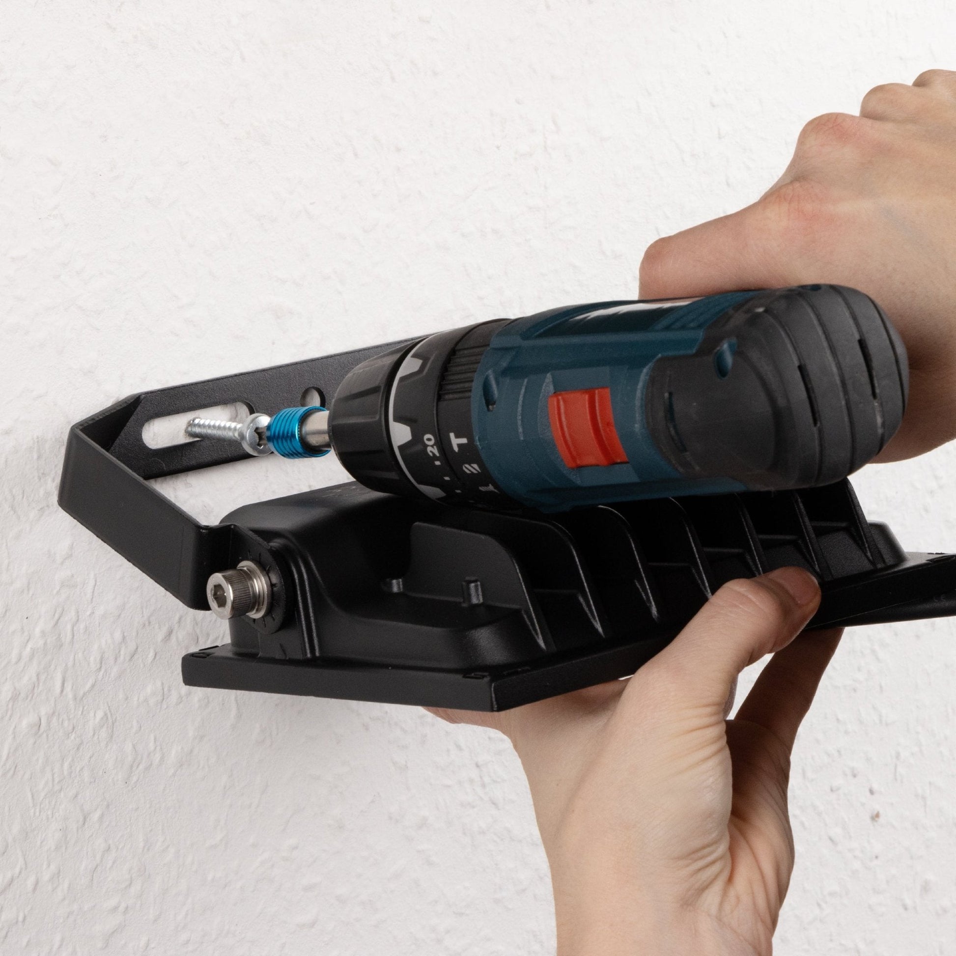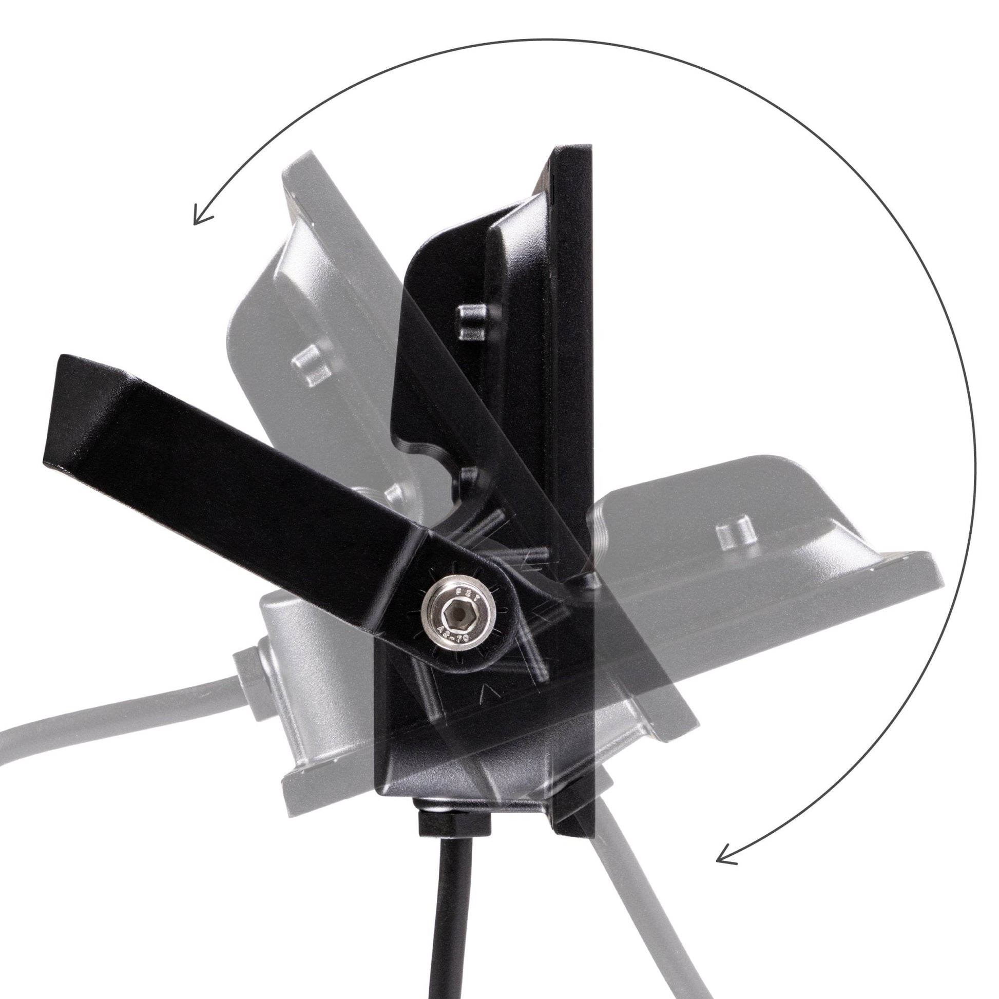 Het monteren van de schijnwerper is kinderlijk eenvoudig dankzij de meegeleverde beugel. Het armatuur is bovendien kantelbaar (90°) zodat je zelf de optimale richting van de lichtbundel instelt.