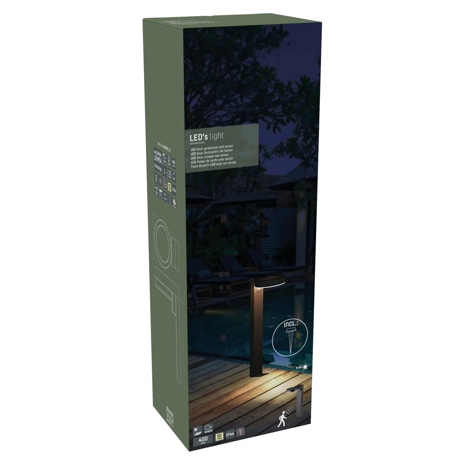 LED's Light RVS Solar LED Tuin Lantaarnpaal met Bewegingssensor - Draadloos - 3 standen - Zwart