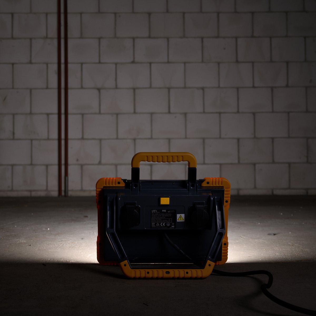 Aan de achterzijde van de bouwlamp zijn 2 extra stopcontacten verwerkt. Hier kun je bijvoorbeeld andere verlichting of je elektrische gereedschap op aansluiten. Handig!