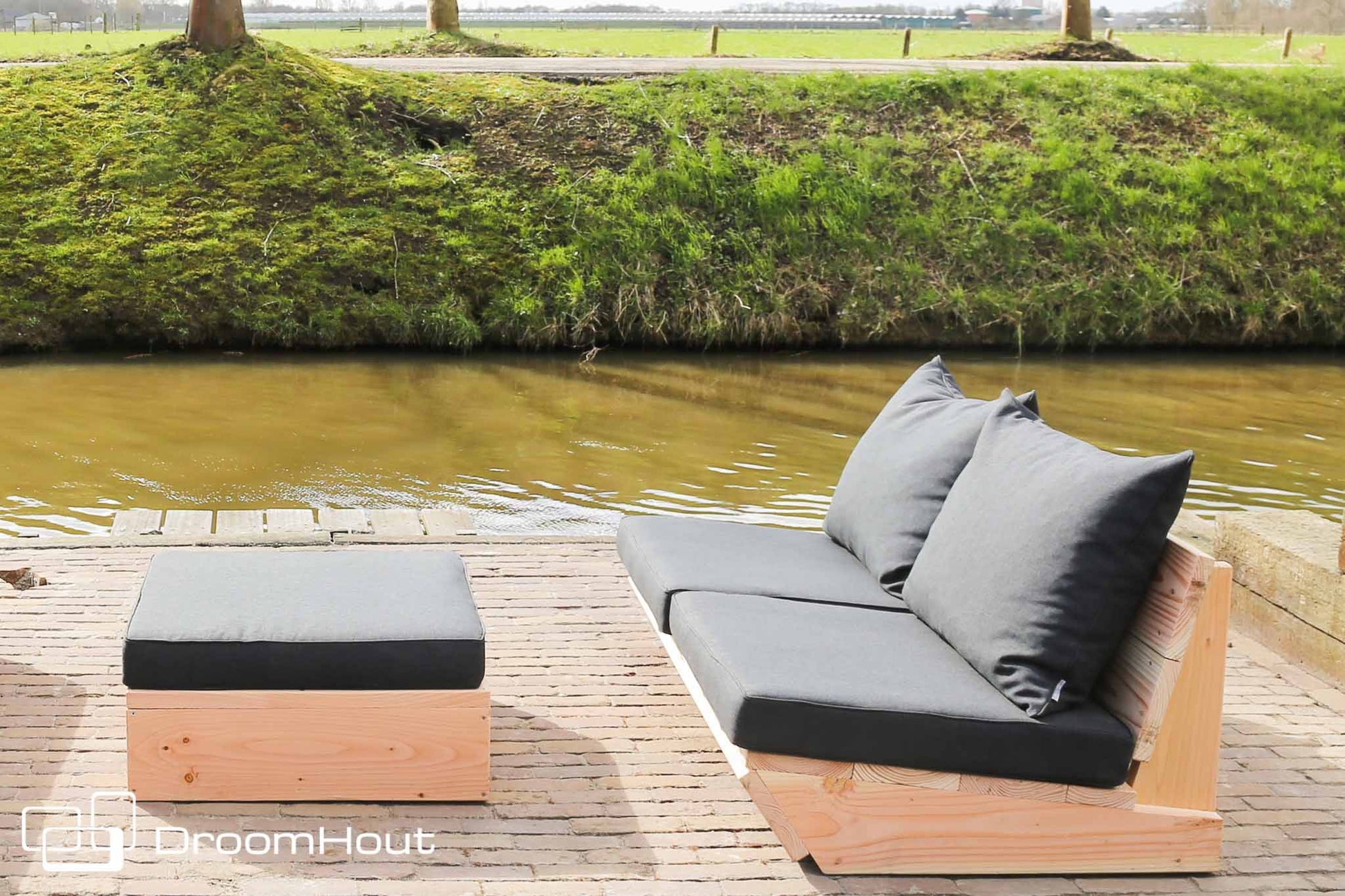 Behalve de grote kleurkeuze heeft de Sunbrella stof als extra leuk voordeel dat het een waterbestendige stof betreft. Deze loungekussens kan je dus het hele jaar door buiten laten liggen.