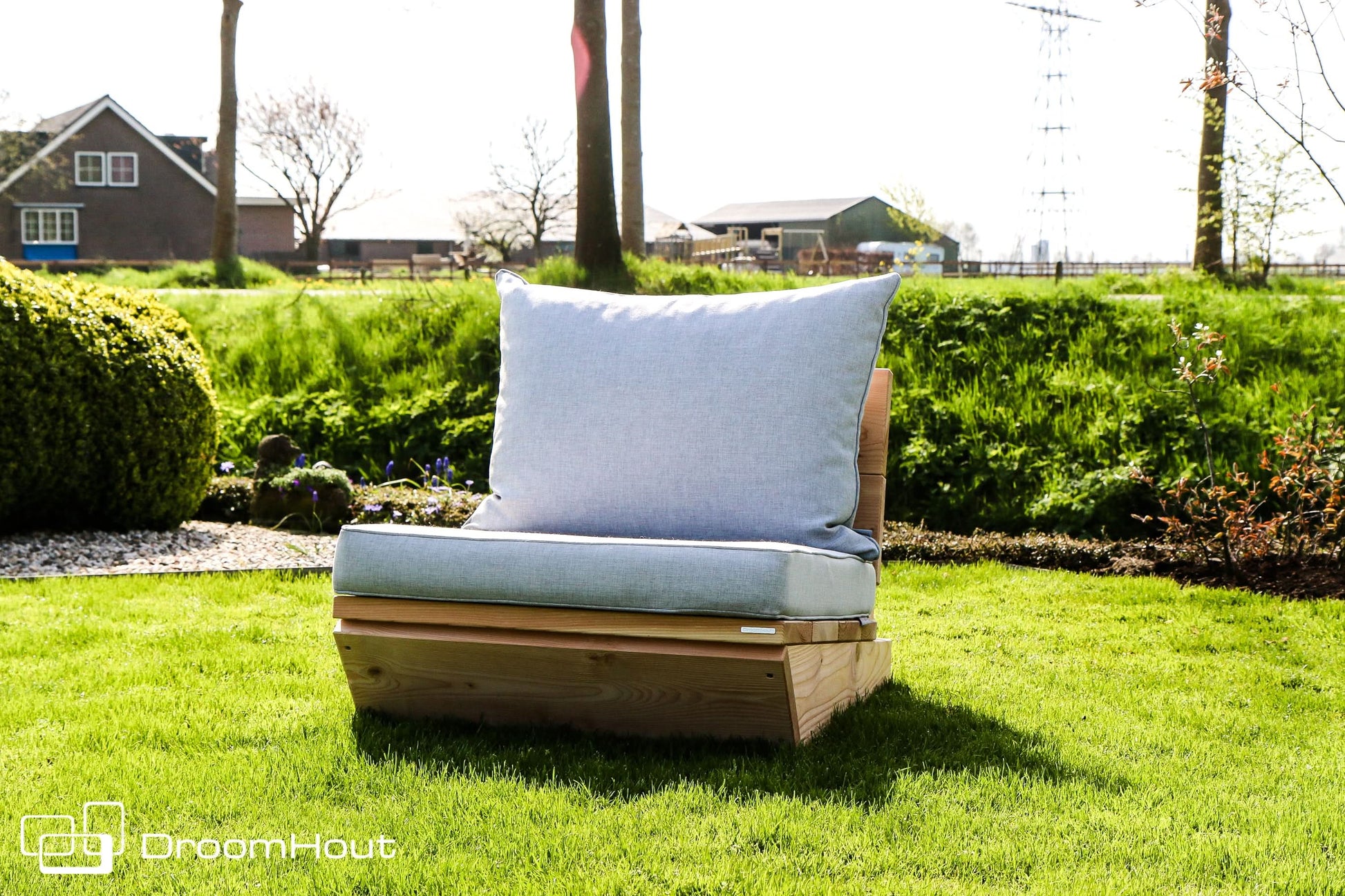 De loungestoel Montecastelli is een originele compacte loungestoel van douglas steigerhout. Deze mooie luie stoel wordt geleverd inclusief zeer comfortabele loungekussens in een kleur en stof helemaal zelf uit te kiezen. Ideaal dus om jou stijl helemaal door te zetten naar buiten. De loungestoel zelf is 70 cm breed, 62 cm hoog en 87 cm diep. De dikke loungekussens hebben een afmeting van 70 x 70 cm, een heerlijke comfortabele loungestoel met een ruim zitoppervlak. De Montecastelli is de ideale steigerhouten loungestoel voor op de kleinere terrassen en balkon!