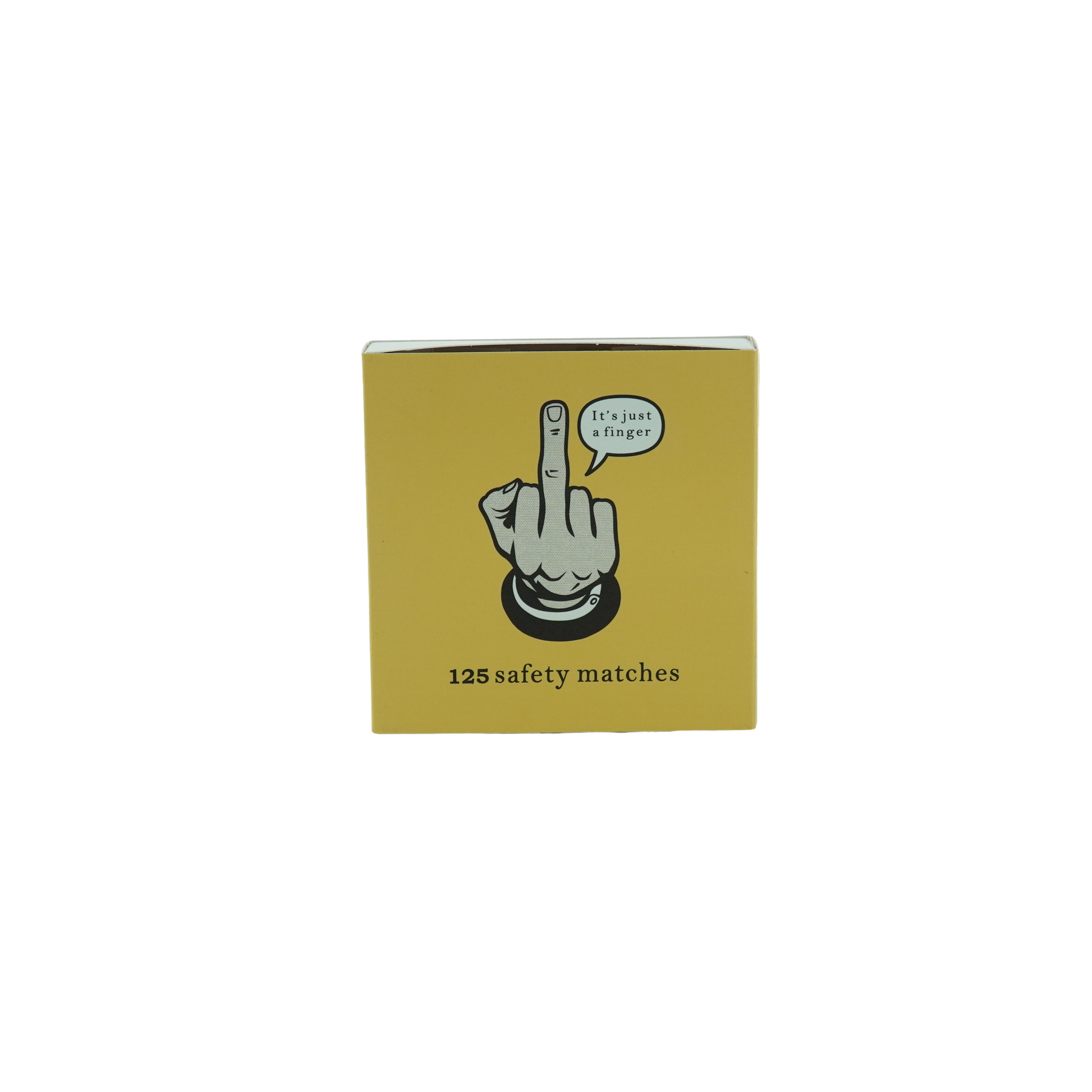 LUCIFERS KUNNEN OOK LEUK ZIJN- Dit gekleurde lucifer doosje is handig en een prachtig styling object met zijn grappige design! Het doosje is versierd met een middelvinger en de tekst: 'It's just a finger! De lucifers hebben een zwarte kop en zijn 10 cm lang. In een doosje zitten 125 stuks. Kaarsjes aansteken is nog nooit zo leuk geweest!