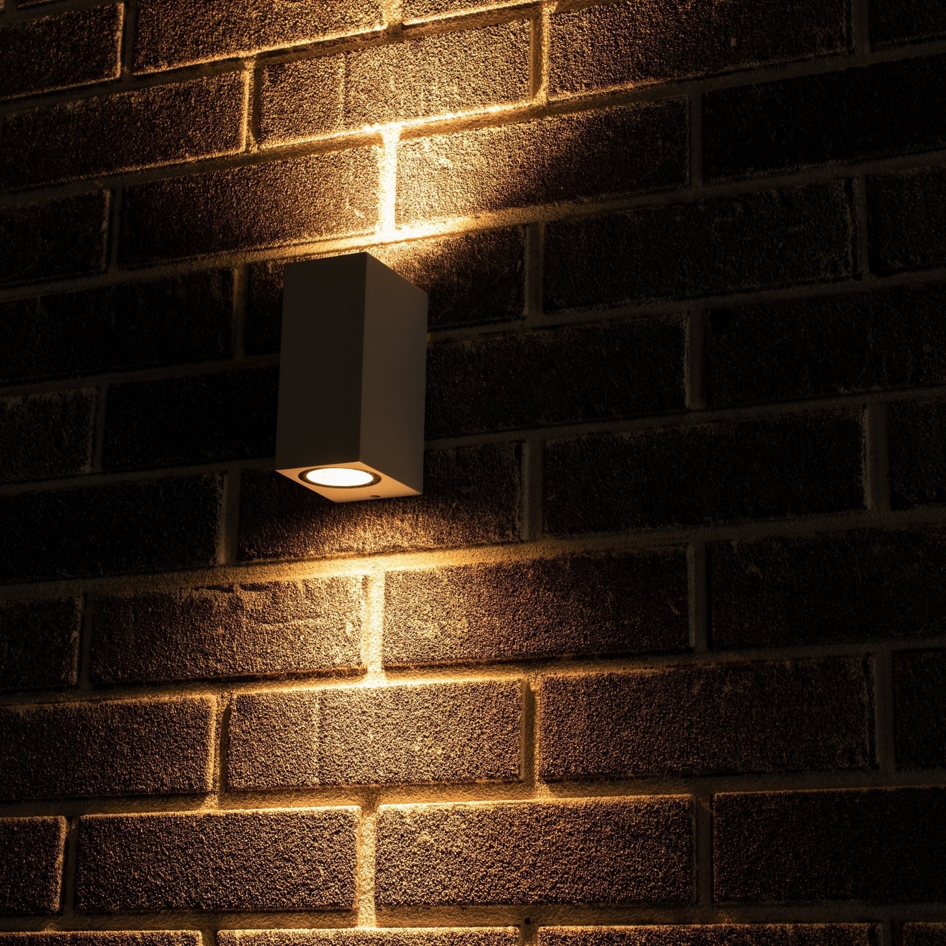 Door gebruik van zorgvuldig gekozen materialen waaronder aluminium en gehard glas, profiteer je van een extra lange levensduur. De muurlamp kun je aan je buitenmuur bevestigen. Ook kun je de wandlamp binnen gebruiken in je gang, hal of woonkamer. Iedere wandlamp is voorzien van twee GU10 fittingen waar je een lichtbron naar wens kunt plaatsen. Je kunt er bijvoorbeeld voor kiezen om een spotje met warm wit licht te plaatsen, koud wit licht of een slim GU10 lampje. Met een slim GU10 lampje kun je de lamp op afstand vanaf je mobiel bedienen. De muurlamp is uitgerust met twee GU10 fittingen die geschikt zijn voor ledlampen, halogeen, gloeilampen en smartlampen tot maximaal 35W.
