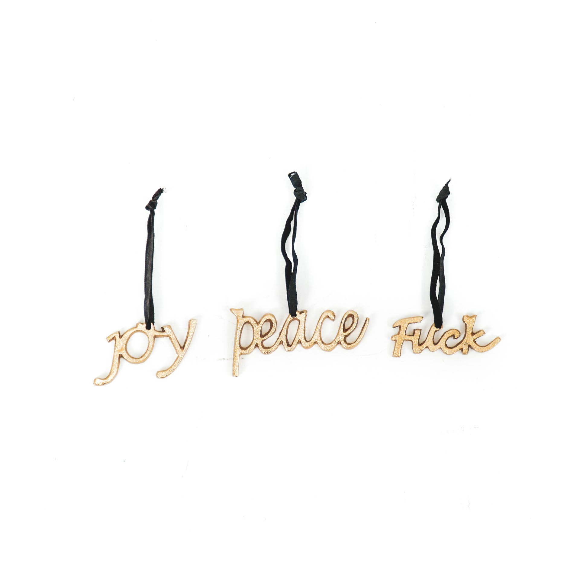 Ornament - Kersthangers - Teksten - Set van 3 - Goud