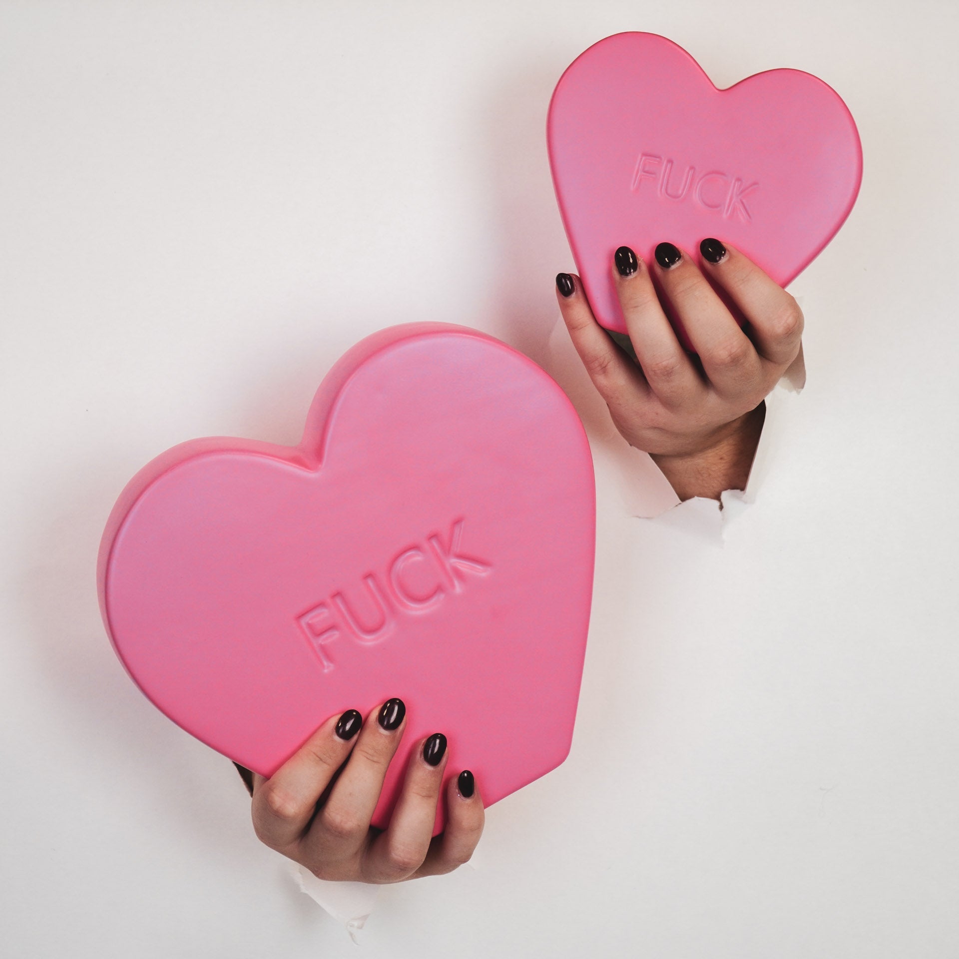 Ornament- Snoephart Sierbeeld 'FUCK'- Keramiek- Fluor Roze- 20x4x18,5cm