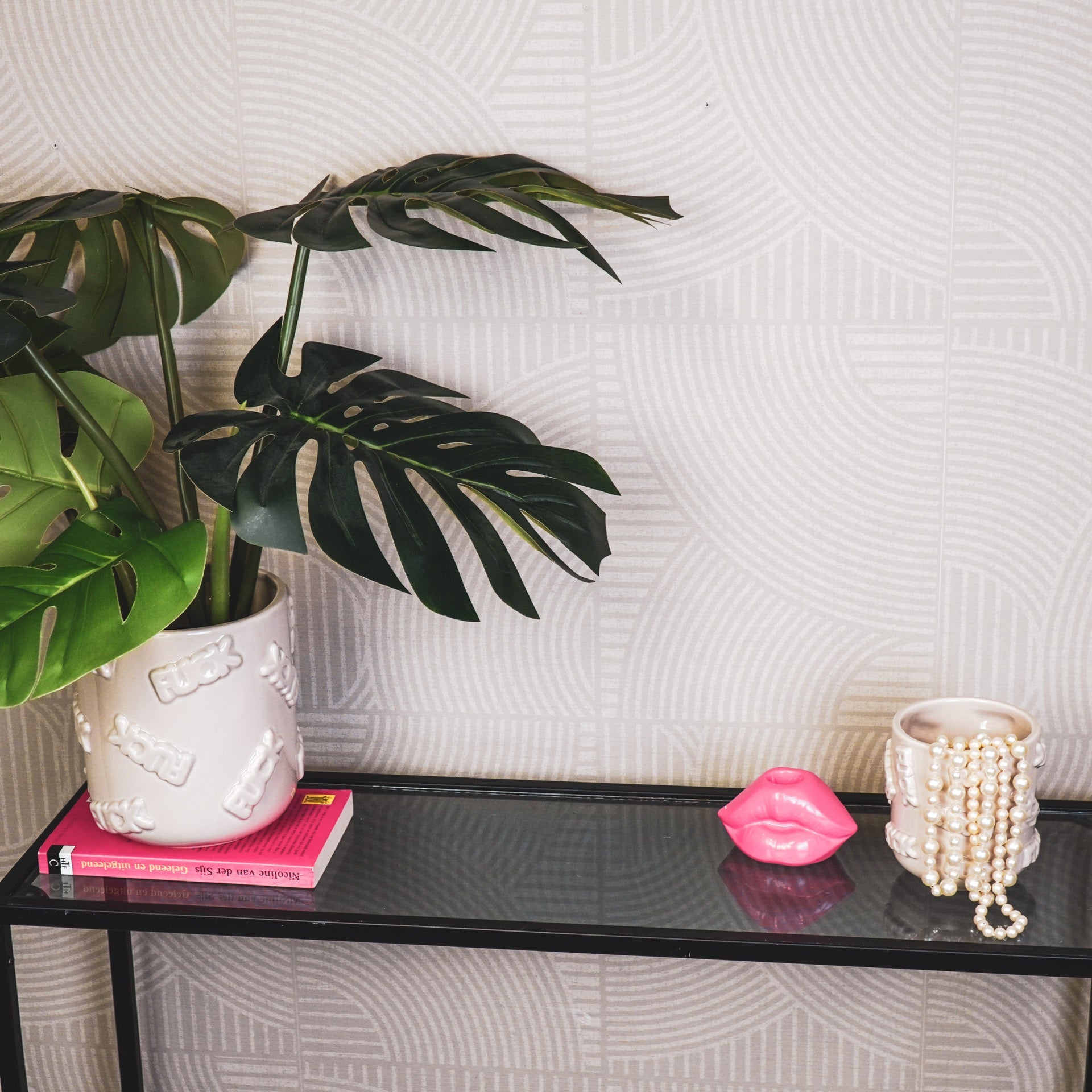 - Beige planten pot met lippen design