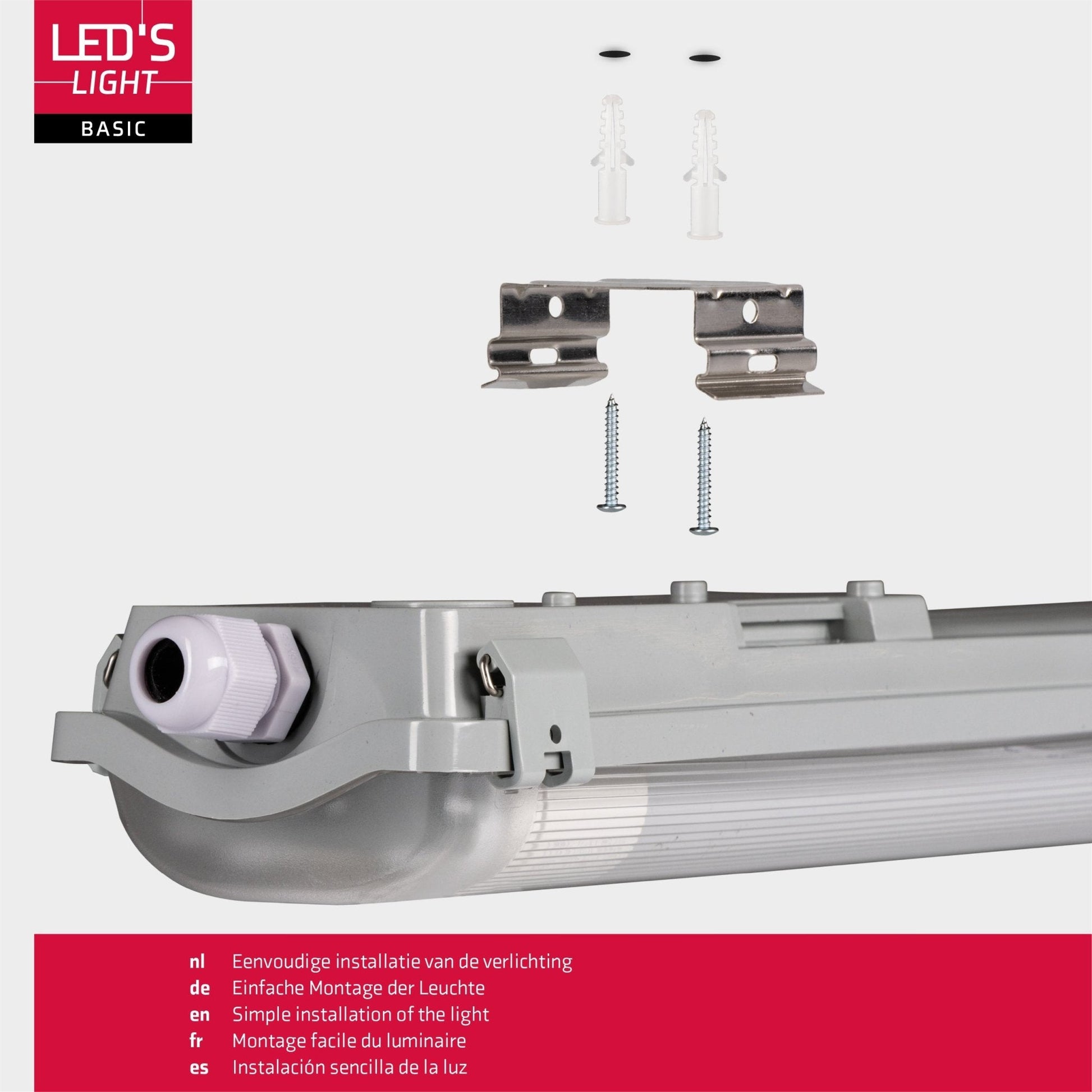 Proventa LED TL dubbel armatuur met 2 buizen 150 cm - Koud wit licht 6500 K - Waterdicht - Complete set