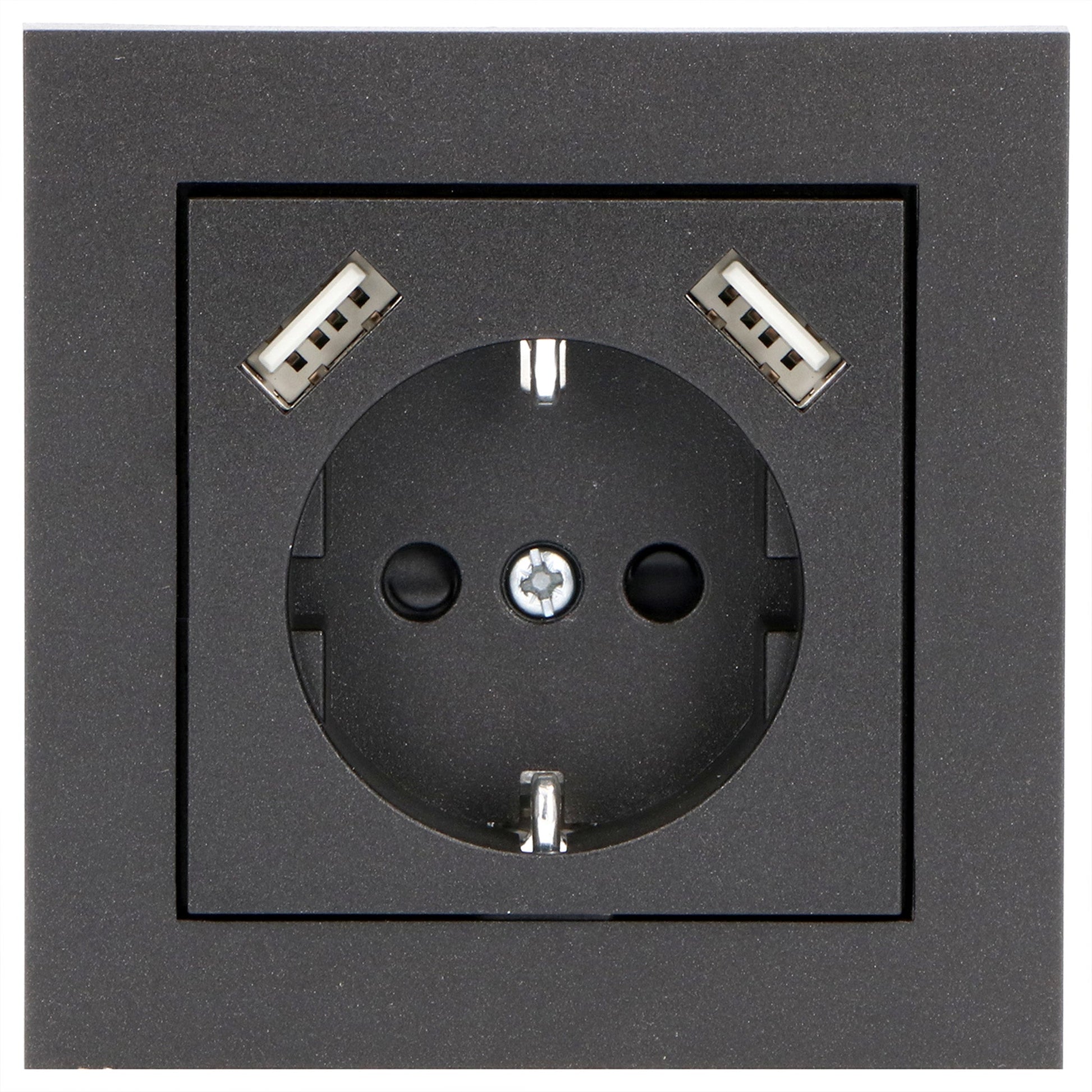 Reflex Inlegplaat voor wandcontactdoos met 2 USB - Zwart
