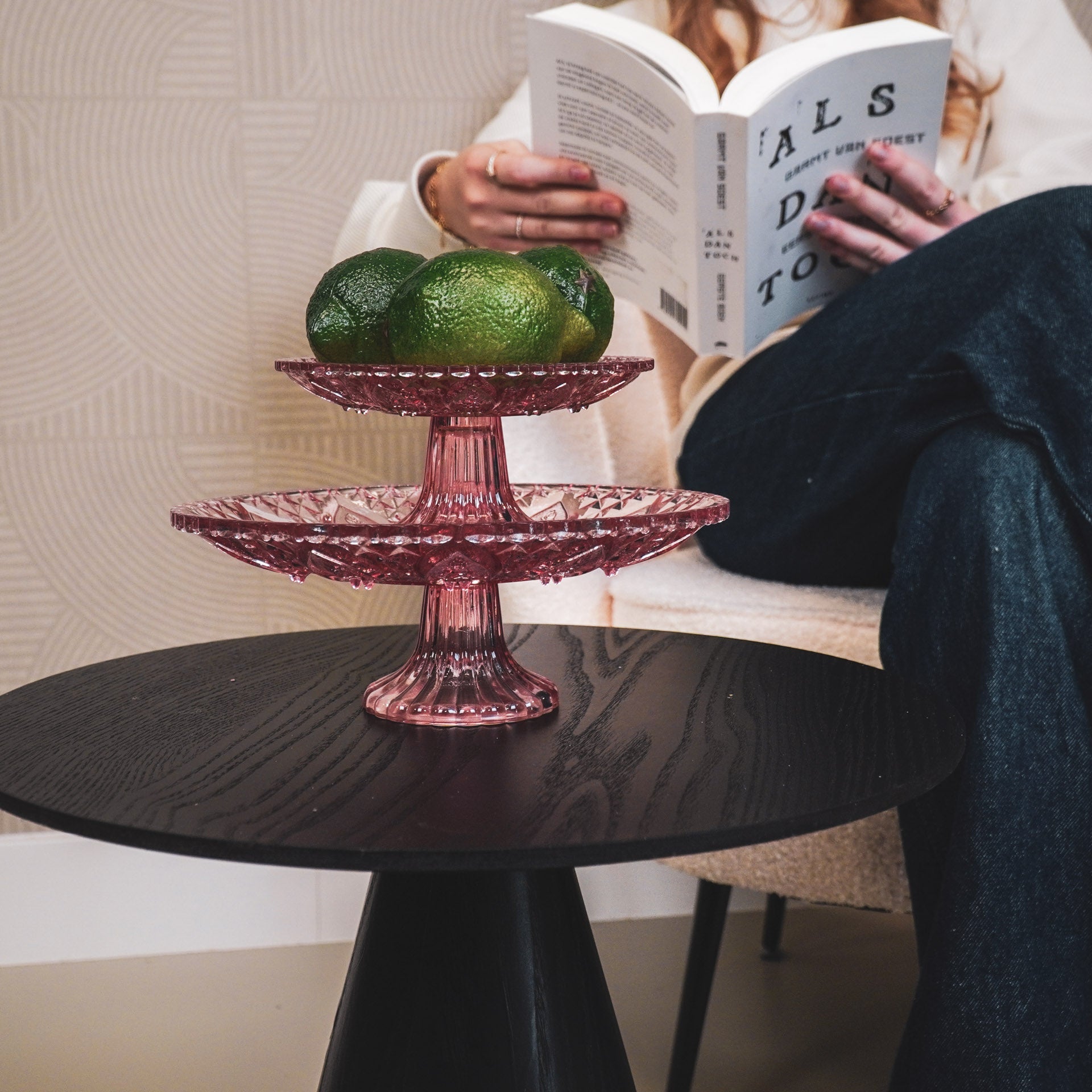Servies- Taartplateau - Glas- Roze- 22,5x8 cm