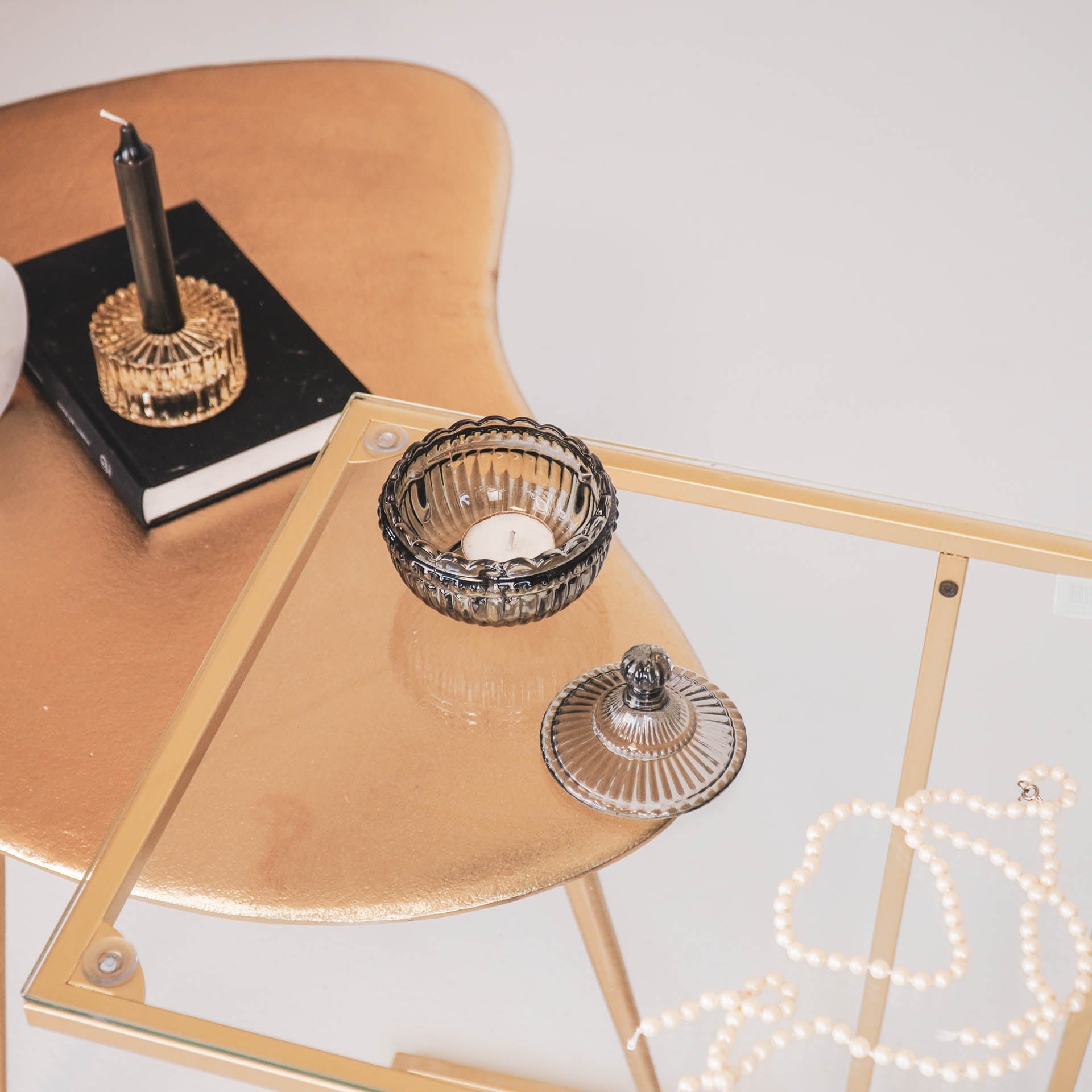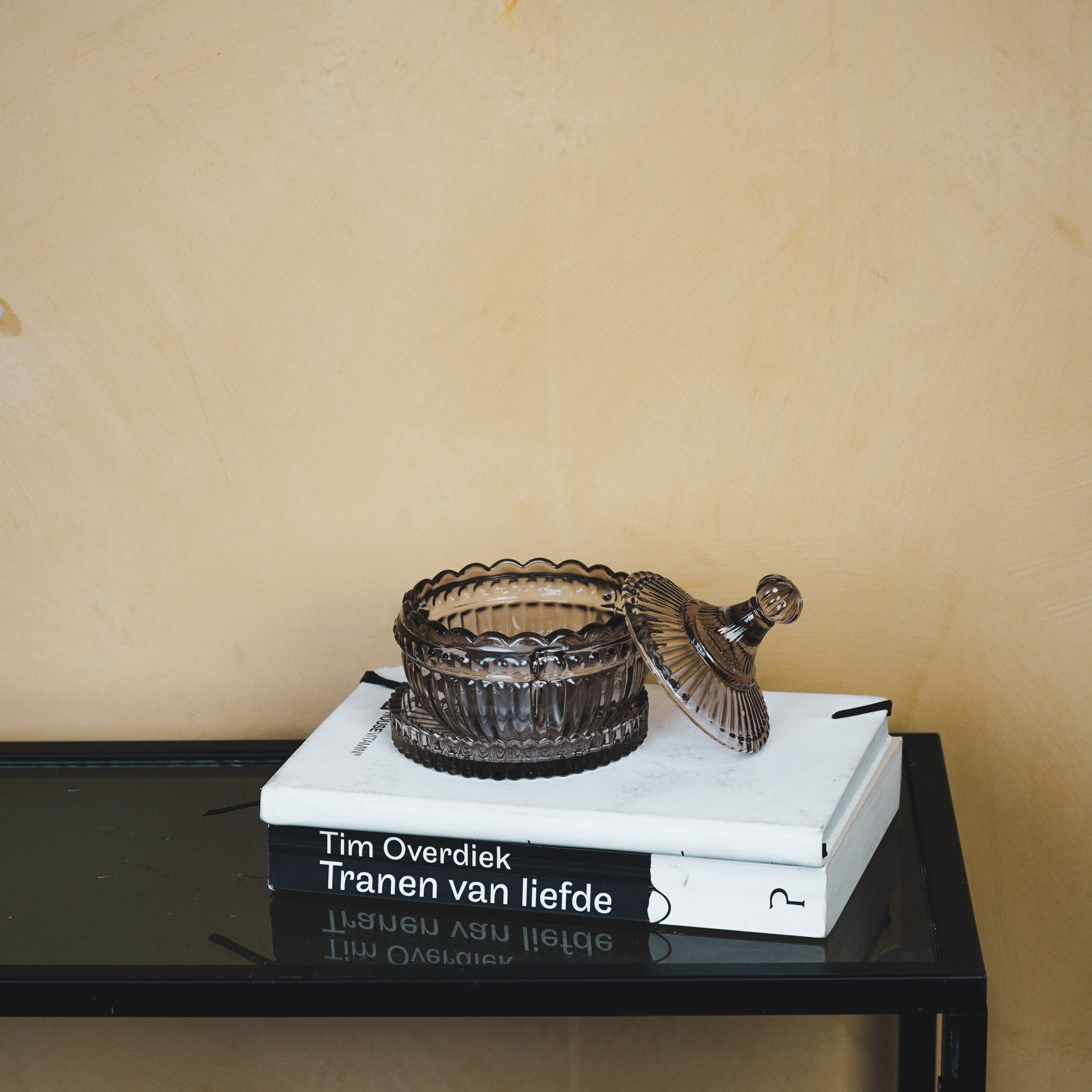 Sierpotje- Opbergpotje met deksel - Glas- Rookglas - 9,5x9,5cm