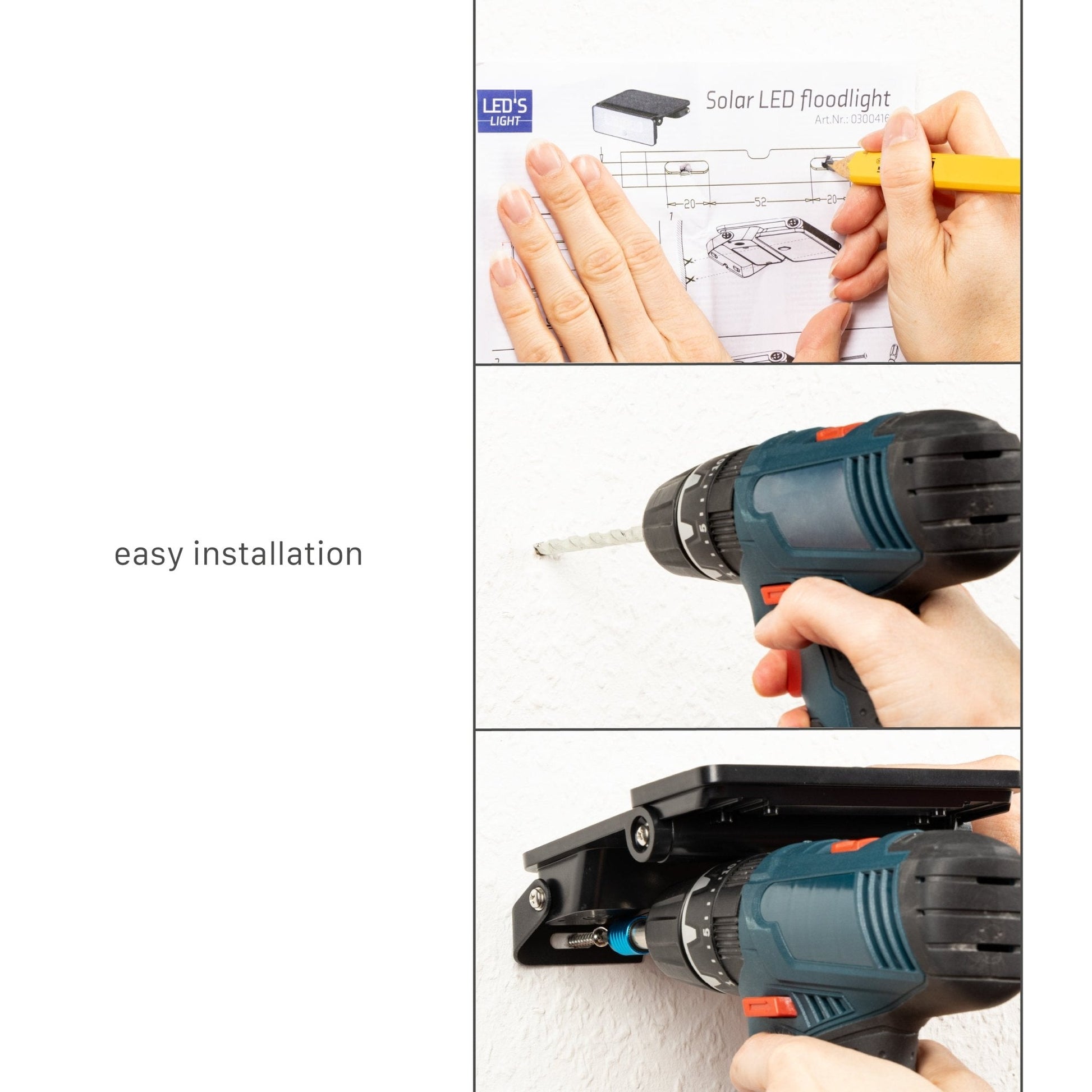 Ook op het gebied van installeren is het natuurlijk voordelig dat de lamp op zonne-energie werkt. Zodoende komt er totaal geen bedrading aan te pas. Je monteert de ultraslanke buitenlamp met behulp van de gebruiksvriendelijke beugel zo aan de muur, schutting, etc. De lamp is IP54 waterdicht, dus je bent ervan verzekerd dat hij elke regenbui met gemak trotseert.