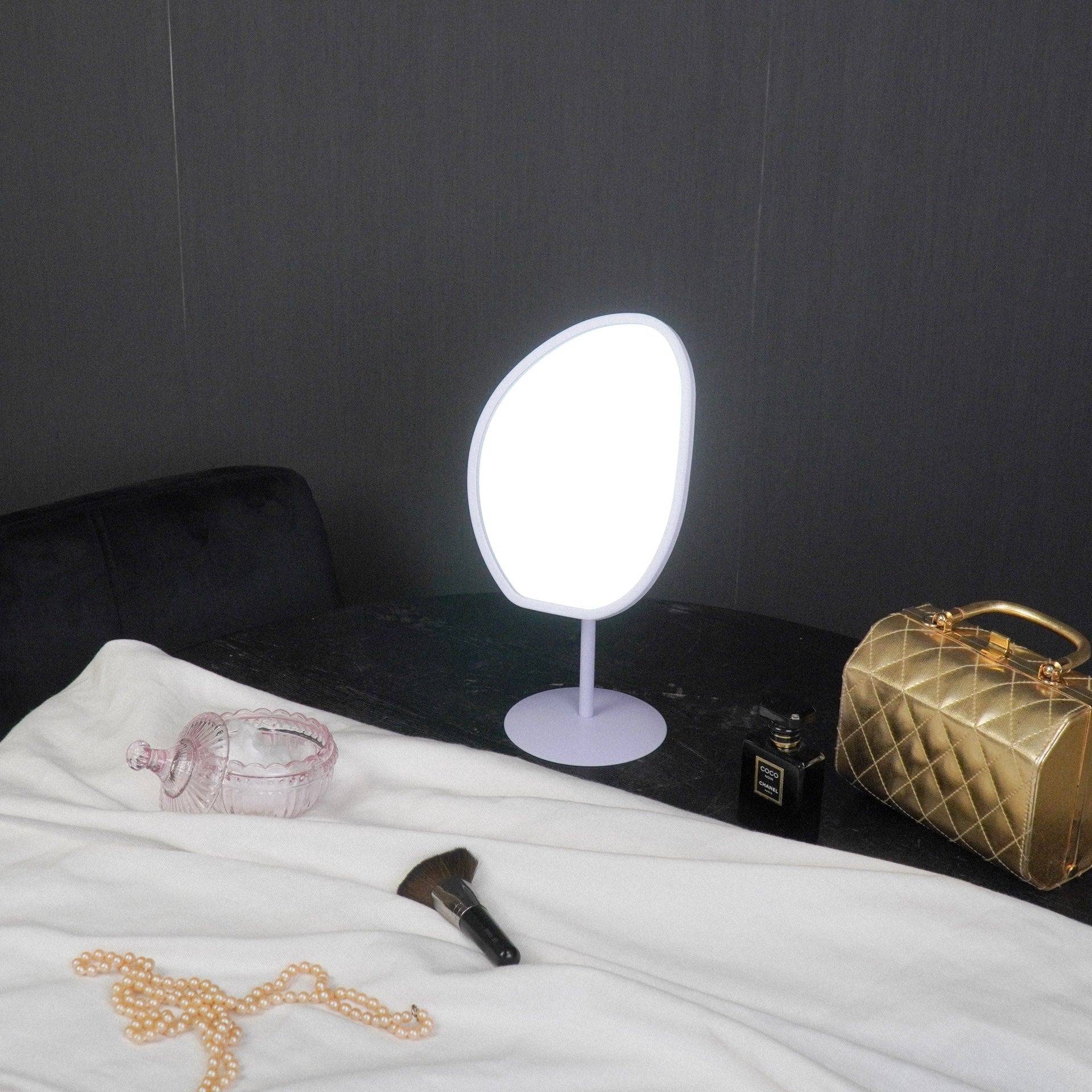 Spiegel - Make up Spiegel- Organisch Rond - Metaal - Lila - 16,5x12x31,5cm