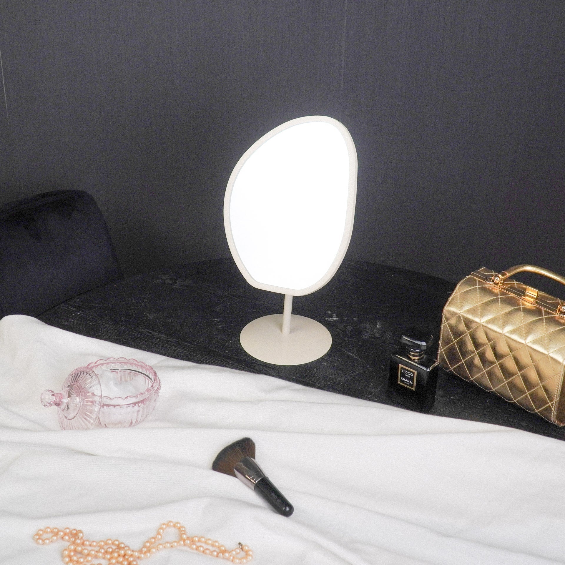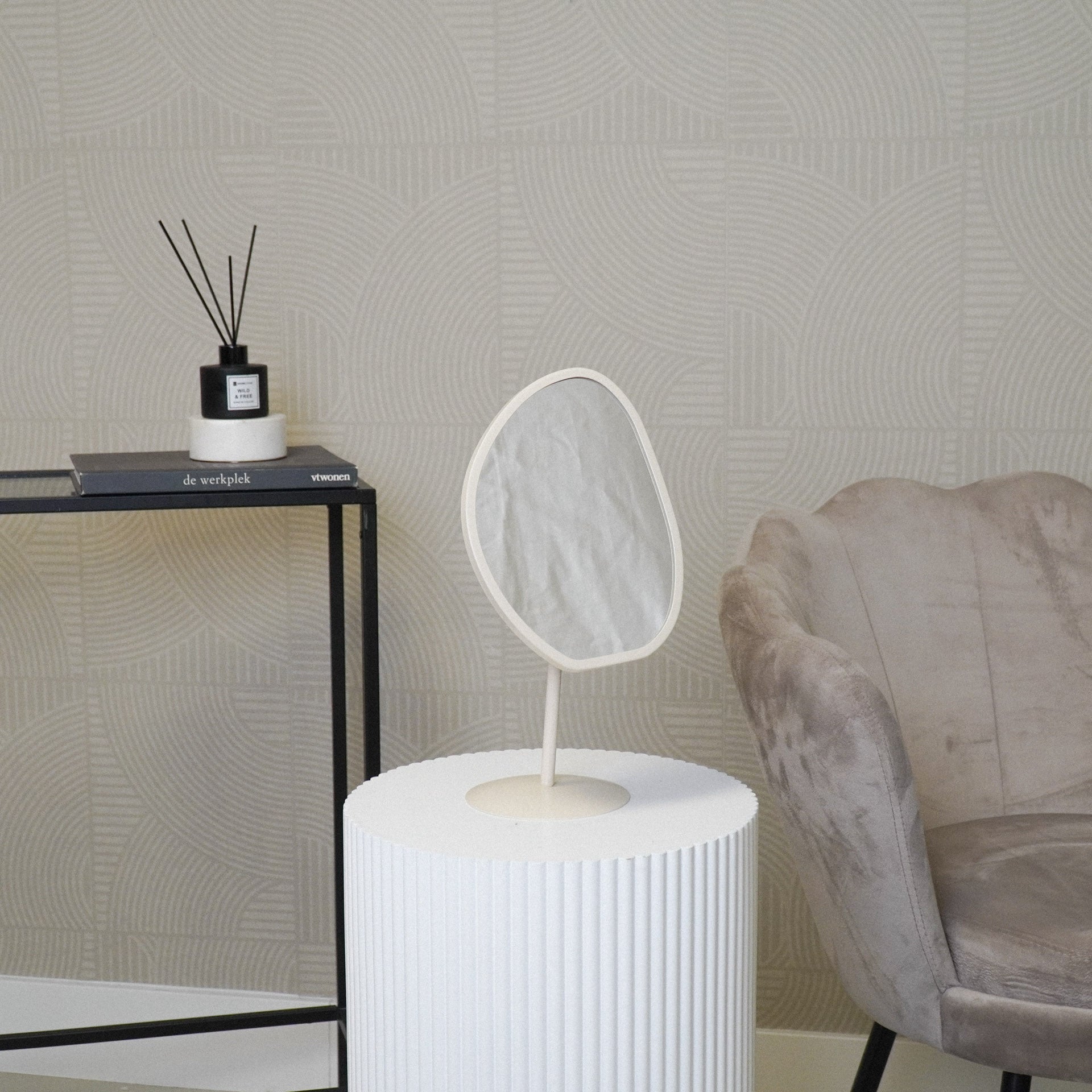 Spiegel - Make up Spiegel- Organisch Rond - Metaal - Zand - 16,5x12x31,5cm