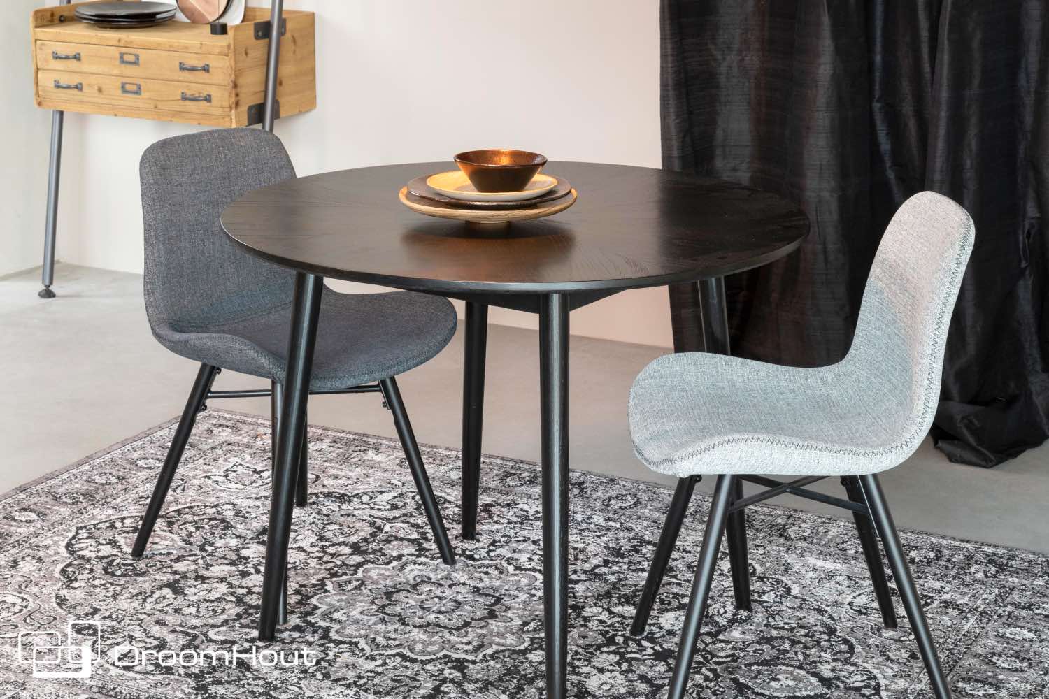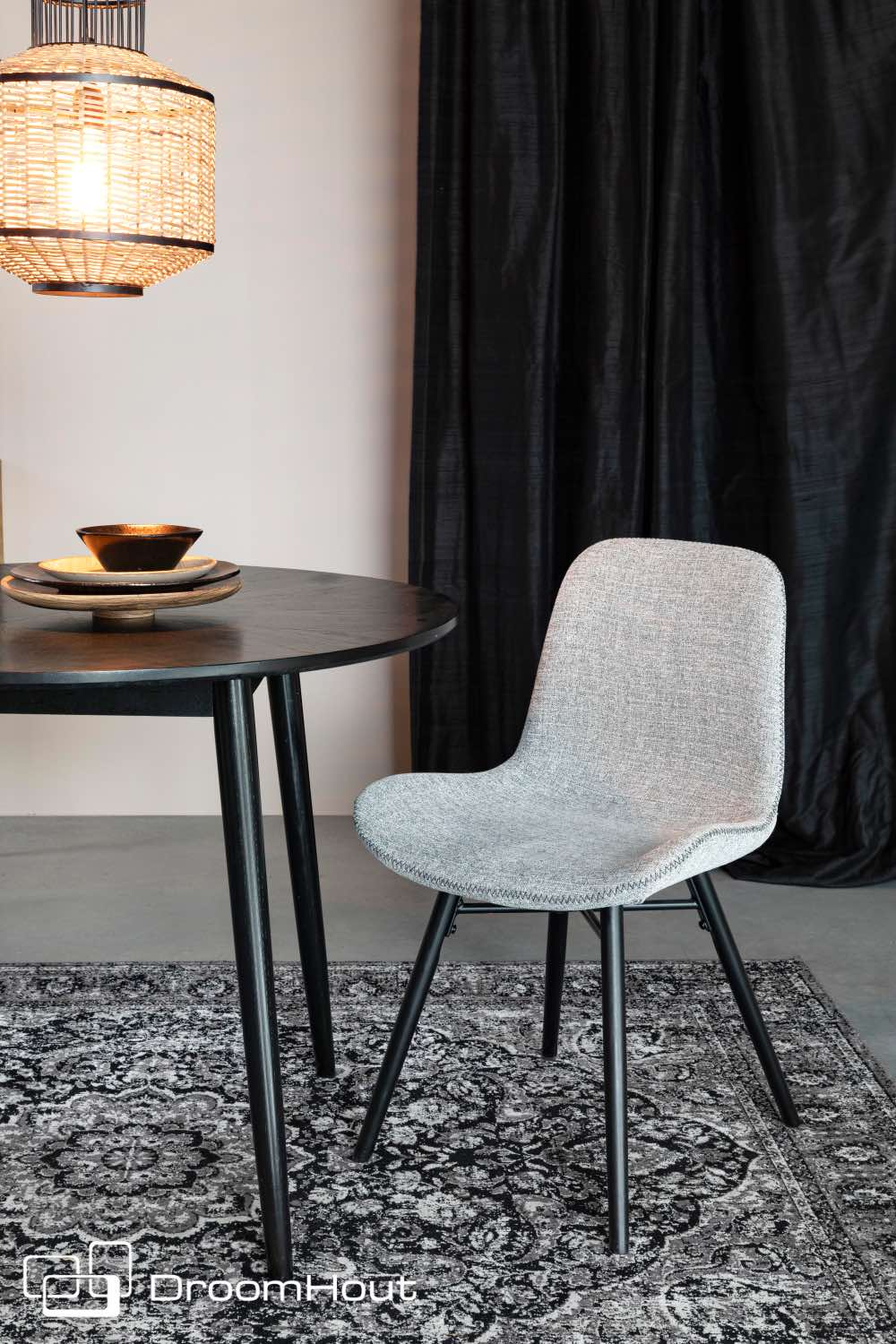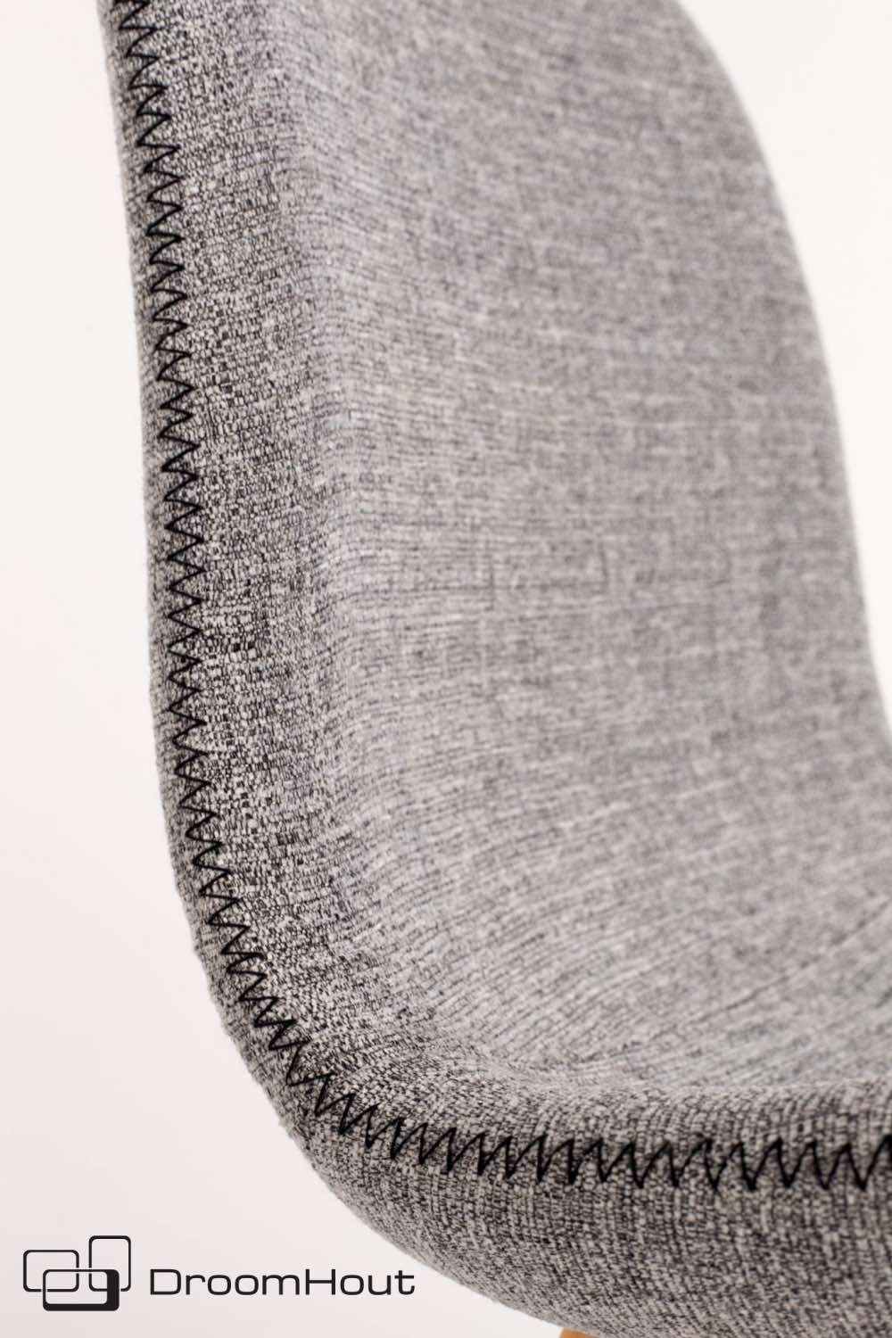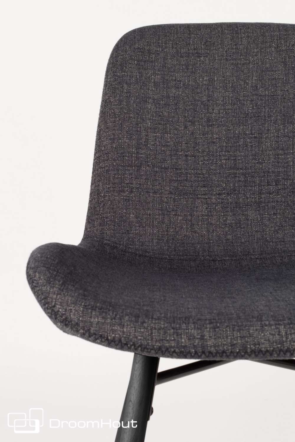 De kuip van stoel Lester is gemaakt van een voorgevormde multiplex schaal met PU-schuimvulling. Hij is licht of donker grijs bekleed met een 100% polyester stof. Heb je dat mooie detail al van dichtbij gezien? De rand van de kuip is super leuk afgewerkt met een zigzag stiksel. De poten zijn van massief beukenhout en zwart gelakt.