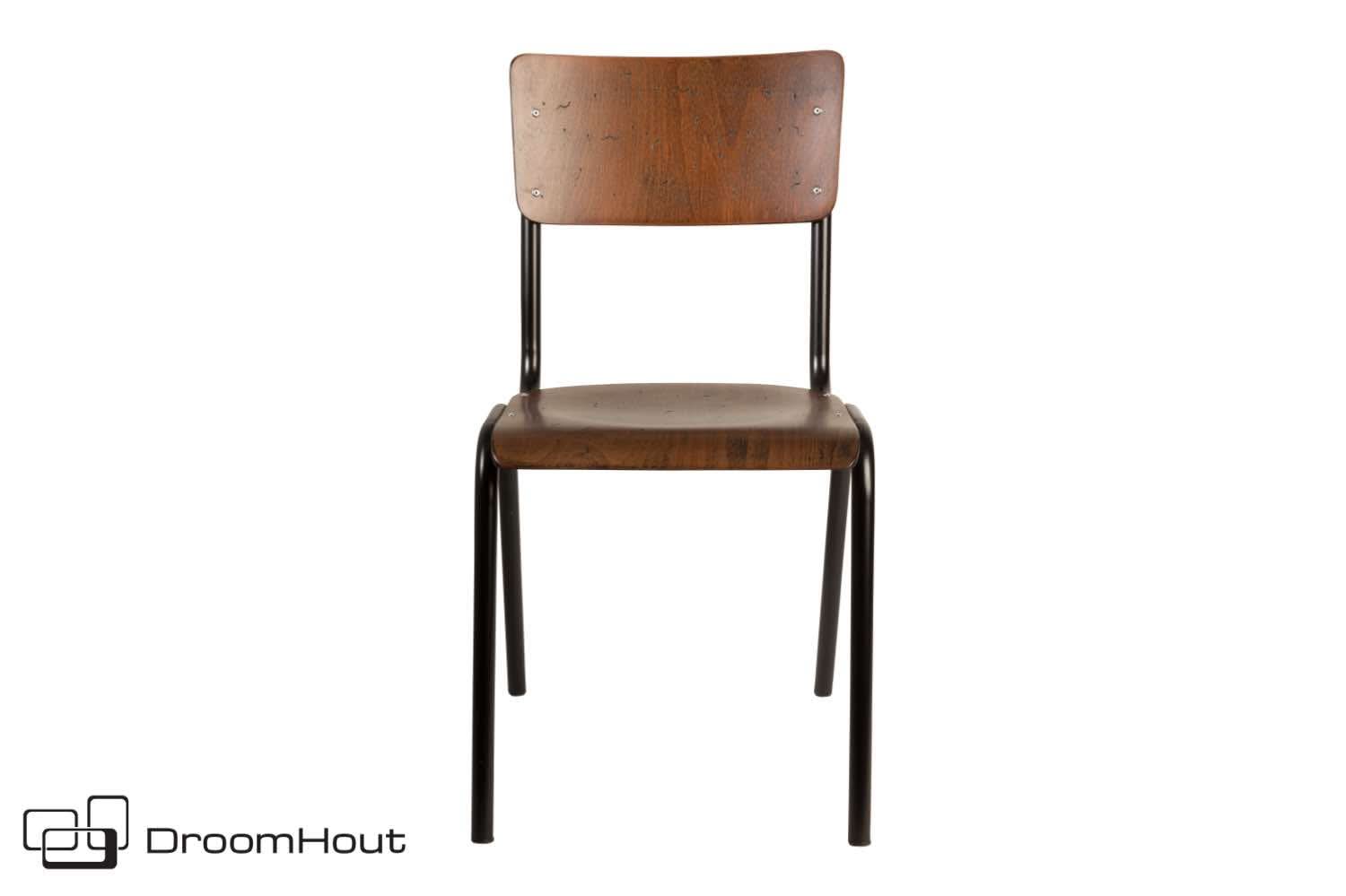 Scuola is stapelbaar en zeer geschikt voor intensief gebruik. Perfect voor bars en restaurants. De rug en zitting van stoel Scuola is van beuken multiplex. Het multiplex is gebeitst in een mooie walnooot kleur en afgelakt met een transparante vernis. Het frame is van zwart gepoedercoat staal. De afmeting van Scuola is 43 x 47 x 83 cm (BxDxH). De zithoogte is 46 cm en zit diepte 44,5 cm. De maximale gewichtsbelasting die stoel Scuola kan dragen is 120 kg. Natuurlijk niet als ze gestapeld zijn!