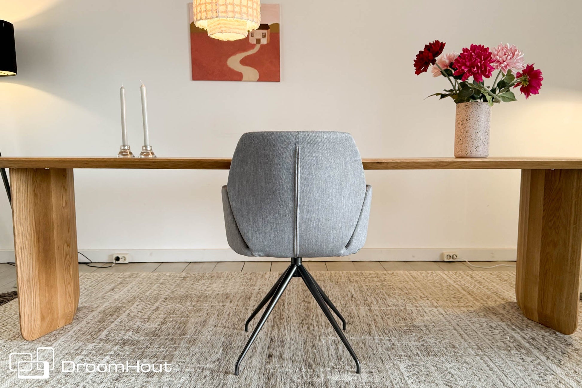 Op zoek naar nieuwe eetkamerstoelen? Onze bestseller, met de stoel Mobitec Mood#95, is nu in deze prachtige one off verkrijgbaar. Van het mooie Belgische merk Mobitec zit je wel goed. Letterlijk, want deze stoel Mobitec Mood 95 combineert looks met optimaal zitcomfort. Deze prachtige set heeft als bekleding de HipHop stof silver, een neutrale uitstraling die met het mat zwarte frame een mooie en rustige eenheid uitstraalt.