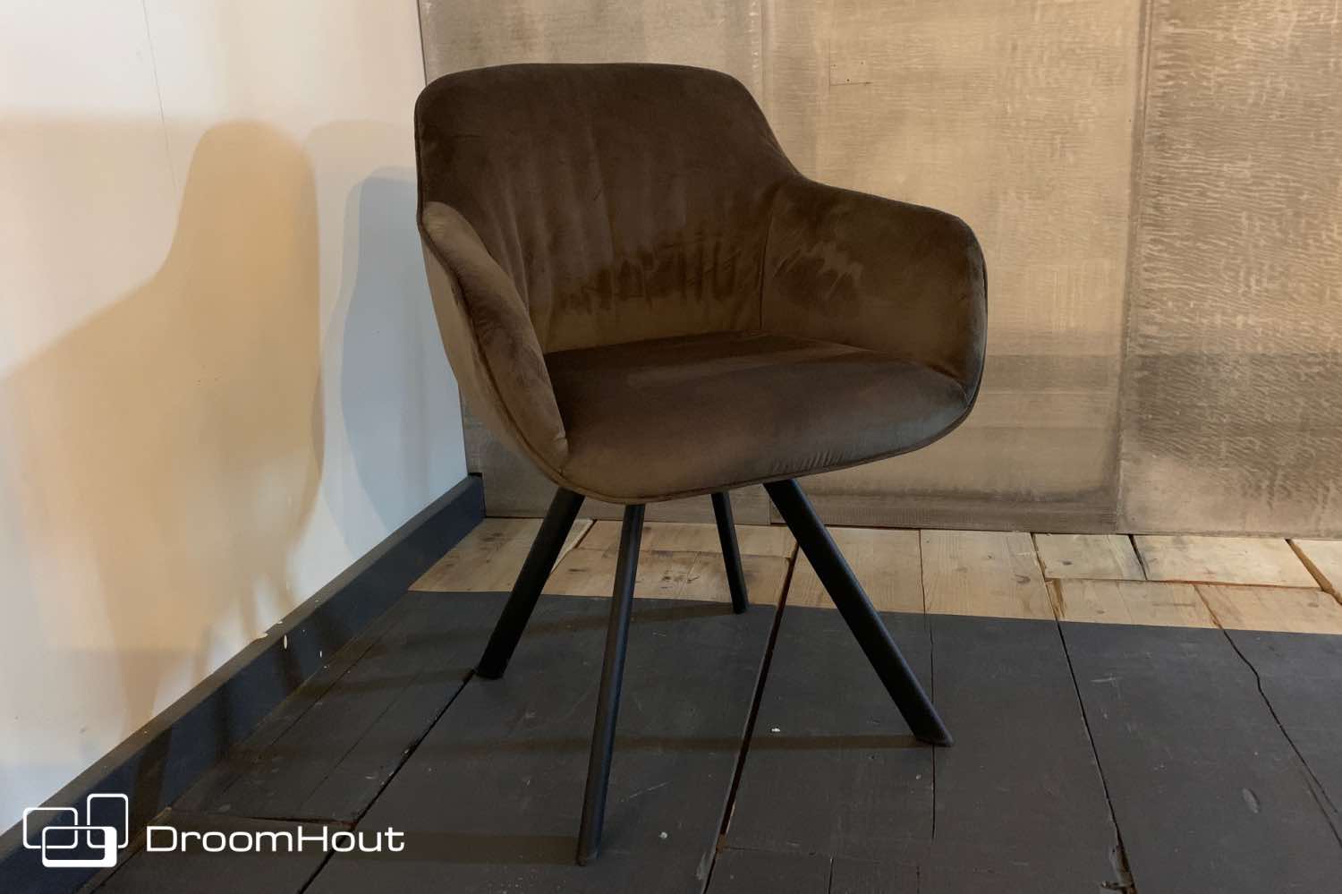 Stoel Sillon Velours van het merk PLM Design is een hele mooie designstoel. De heerlijk zachte kuip is bekleed met een velours stof. Je blijft deze aaien, zo lekker zacht voelt hij. De voorgevormde kuip is stijlvol en zit ruim. Het is heerlijk lang tafelen met deze Sillon stoelen. De armleuning heeft een hoogte van 64 cm en past dus met gemak onder de eettafel. De stoel heeft een zithoogte van 46 cm. De totale afmeting is 57 x 57 x 80 cm (BxDxH). De luxe velvet kuip staat op een stevig metalen frame. De poten lopen naar onder toe wat breder uit. Dit geeft een extra luxe dimensie aan de Sillon stoel.