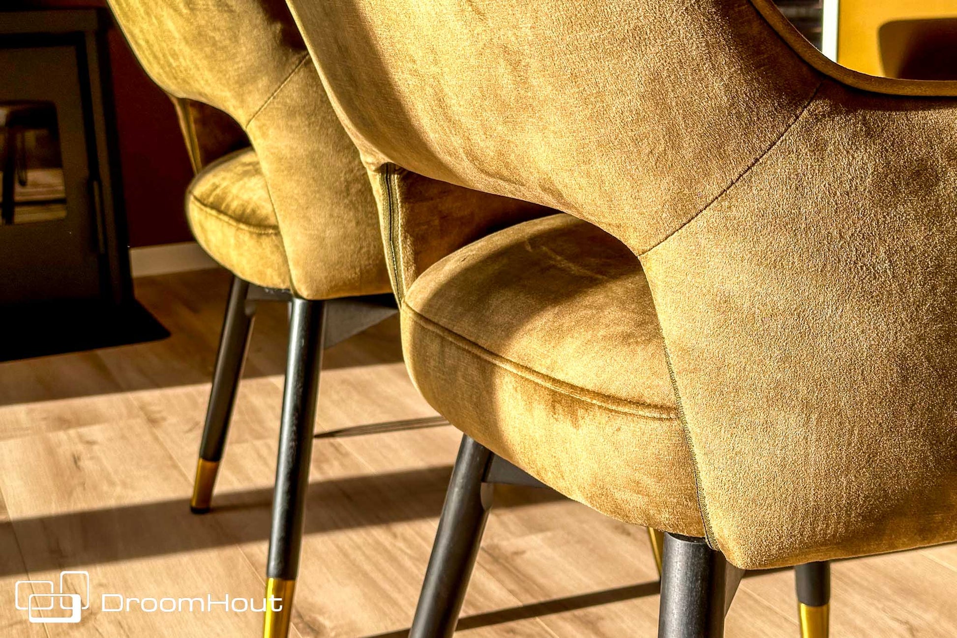 De eetkamerstoel Lenno is bekleed met een velvet stof genaamd Adore. Deze stof zorgt ervoor dat de stoel zacht en minder massief oogt. Wat de stoel Lenno uniek maakt, is het zwart gepoedercoate onderstel. Deze zwarte spiderpoot is afgewerkt met een gouden detail aan de onderkant. Hierdoor creëer je net iets meer dimensie binnen je interieur en een vleugje meer uitstraling dan bij een standaard stoelpoot.