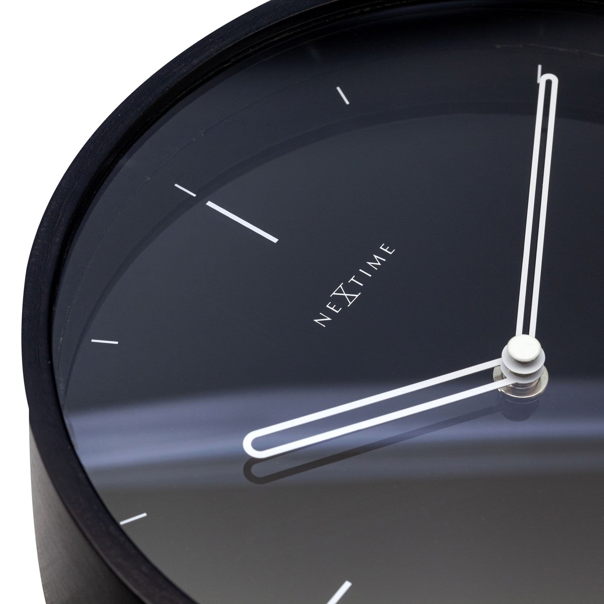 The NeXtime "Noa Table" is a design table clock (27x21x6,5cm). The clock has a black dial, a white stripe index and is covered with glass. Lovely detail are the slim open hands. The design of this black wooden arch shape table clock combined with glass is all about a clear and minmal design. This clock is silent and works on 1 AA battery (not included)