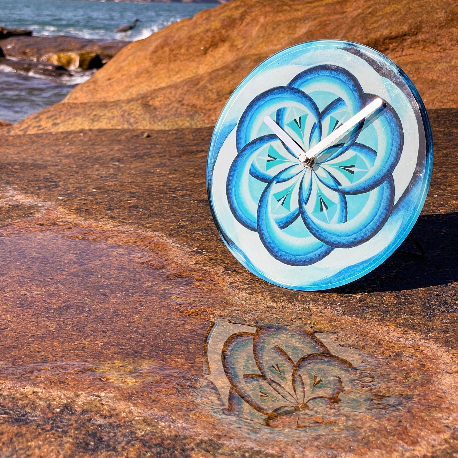 The NeXtime Cosmo Table silent clock (20cm) offers a calm, uplifting spiritual journey with its circular cosmic pattern silkscreened on tempered glass. Designed by WENergy, it is also a stunning artsy display item for your table top. This clock uses 1 x AA battery (not included).