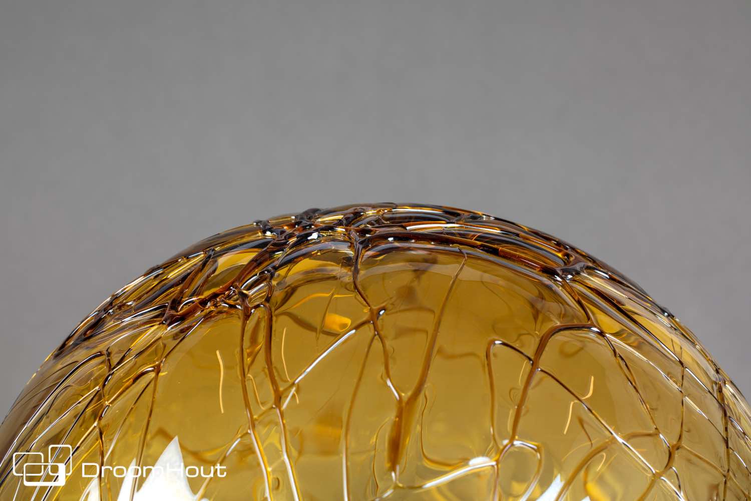 De Lune tafellamp van Dutchbone heeft een amberkleurige glazen kap. Deze heeft een grof gegoten en gevormde structuur. In combinatie met de warme amber kleur krijgt de Lune het gevoel van de kraters die je in de maan terug ziet. De glazen kap zit op een zwart gelakt ijzeren lichaam en is voorzien van een 160 cm zwart katoenen textielkabel met dimbare aan / uit schakelaar. De Luna heeft een ingebouwde LED max 5 watt.