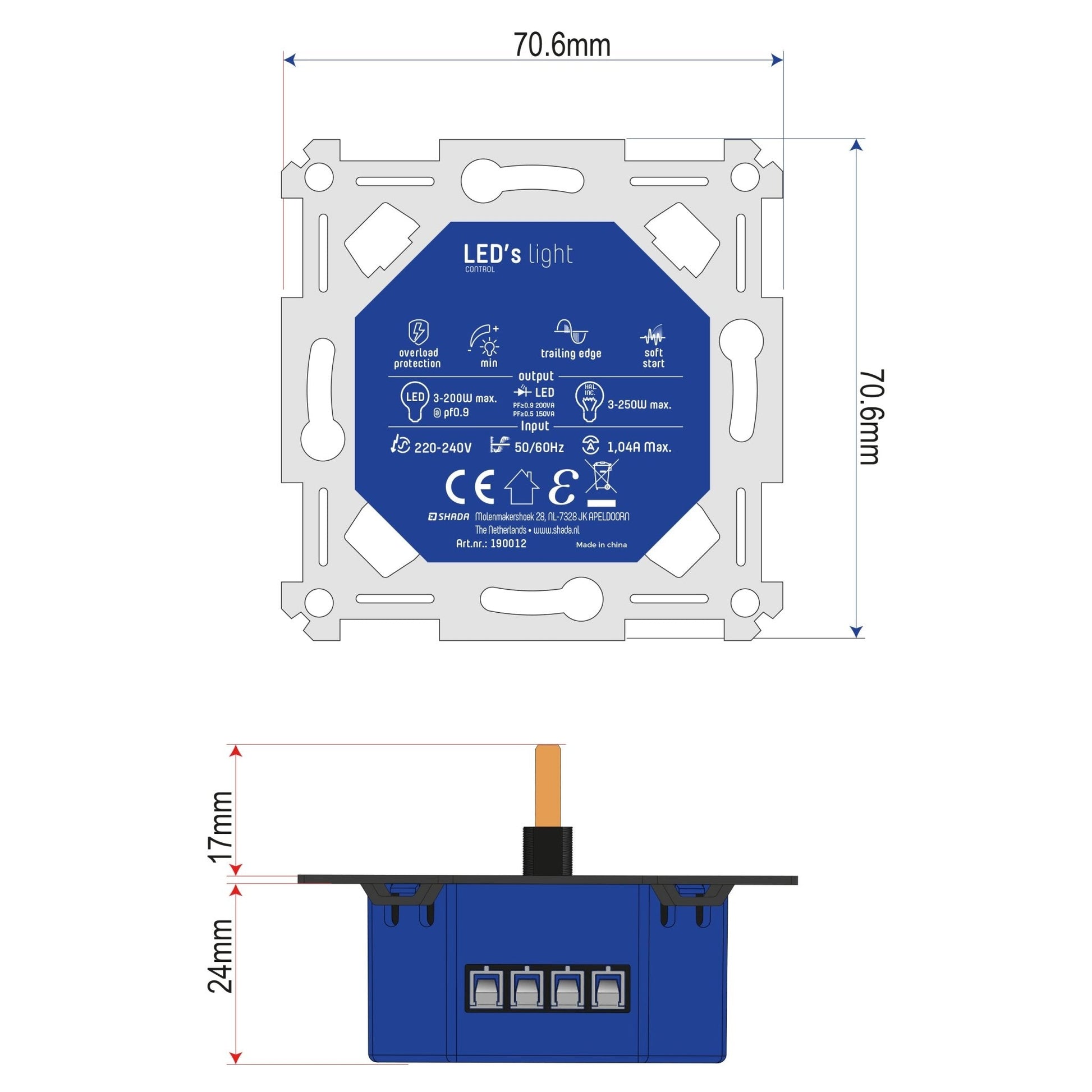 Op zoek naar de perfecte verlichting voor elke gelegenheid? Met deze krachtige dimmer kunt u gemakkelijk de helderheid van uw verlichting regelen en het perfecte licht creëren. De dimmer maakt gebruik van trailing-edge om te dimmen en bevat een trimpot waarmee een lager dimniveau kan worden ingesteld.