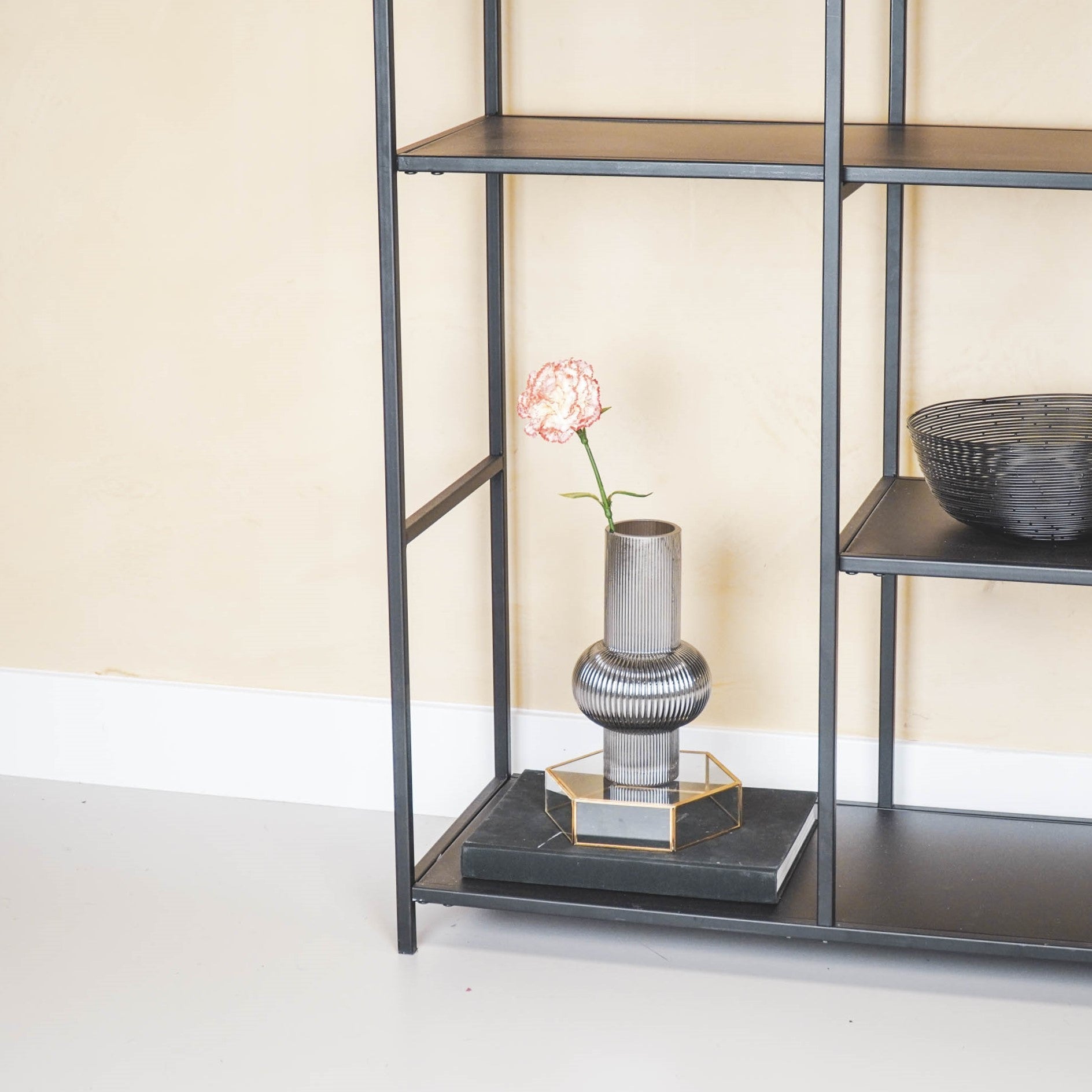 Vaas - Art Deco - Ribbel - Grijs - Glas - 13,5x25cm