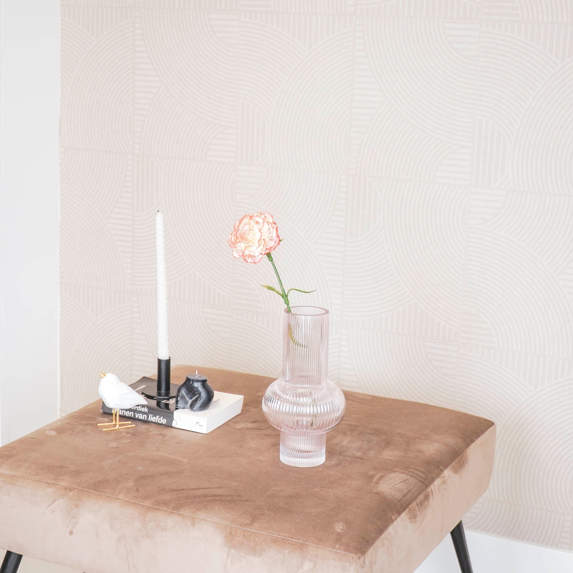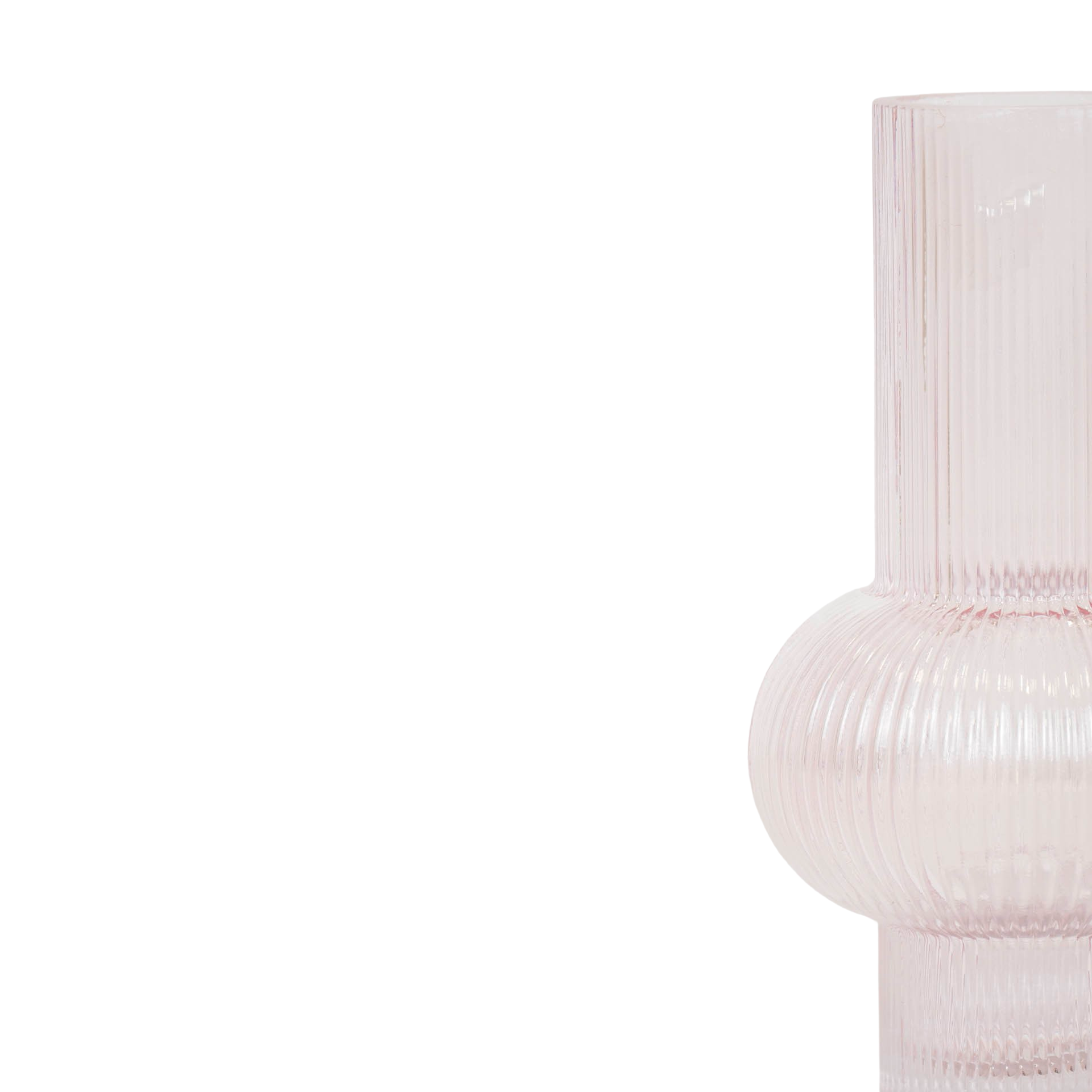 Vaas - Art Deco - Ribbel - Roze - Glas -13,5x25cm