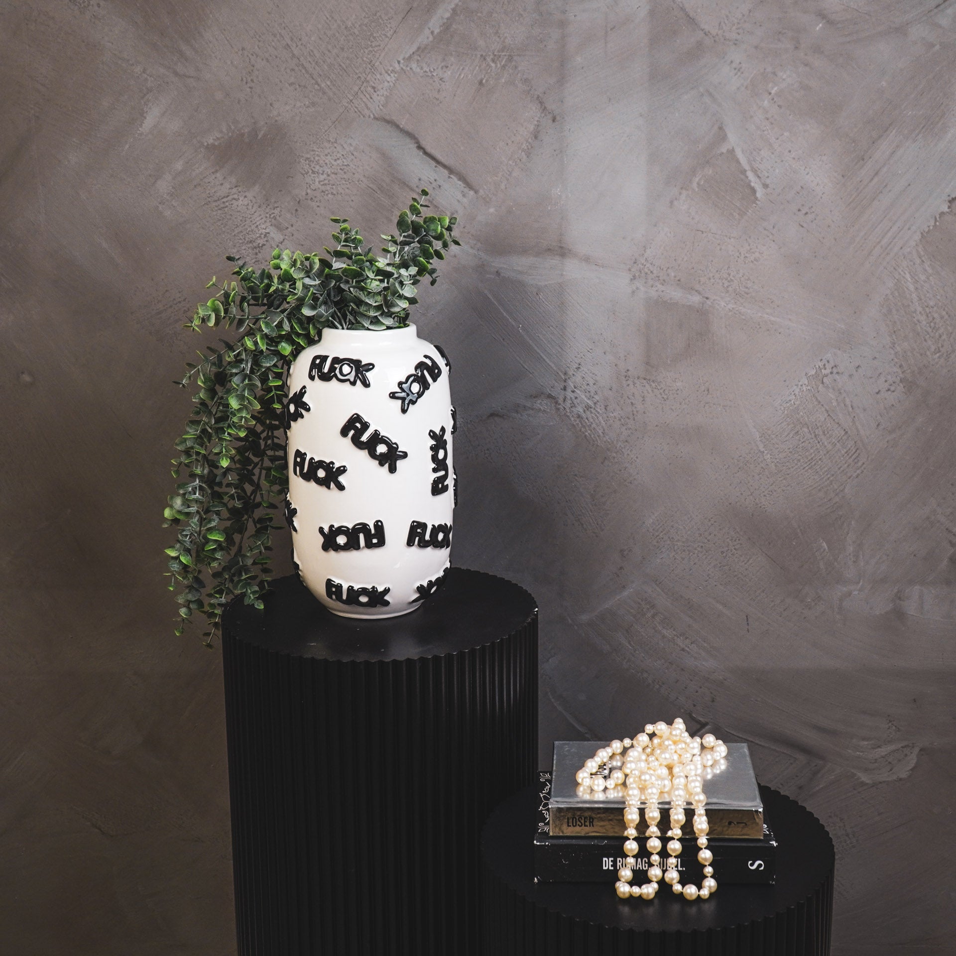 Vaas - Bloemen Vaas 'FUCK' - Keramiek - Wit/Zwart - 17x17x27cm
