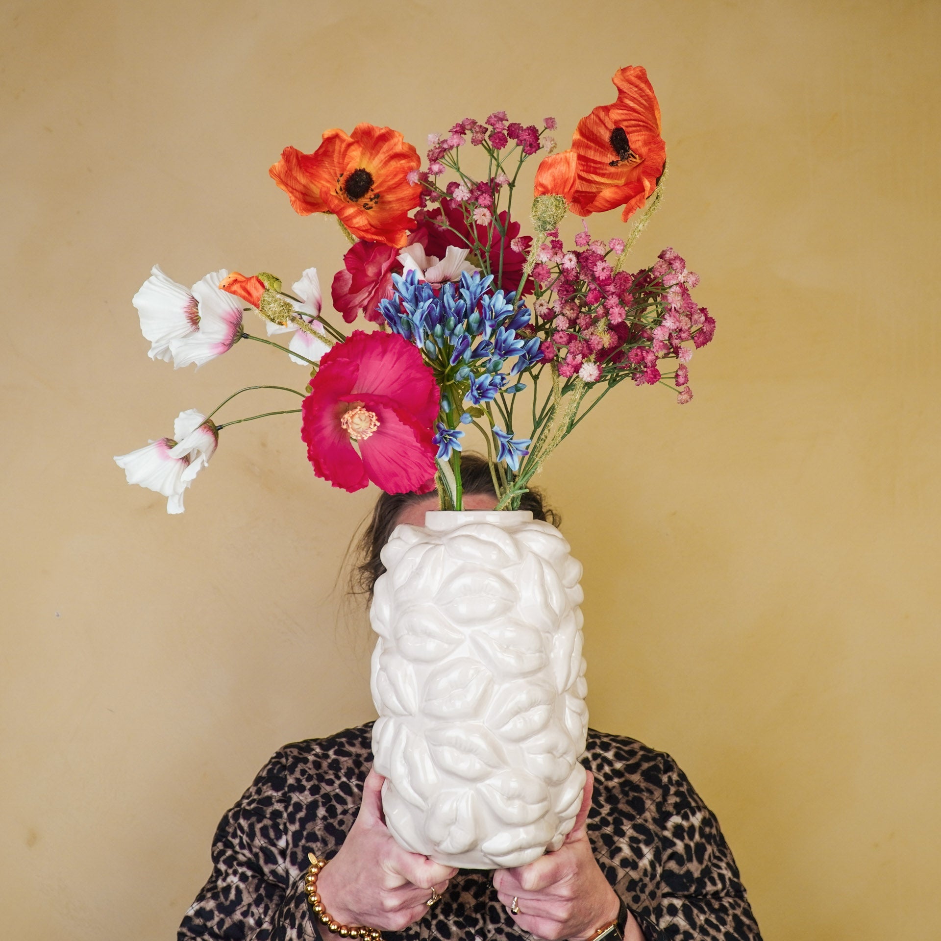 - Beige bloemenvaas met lippen design